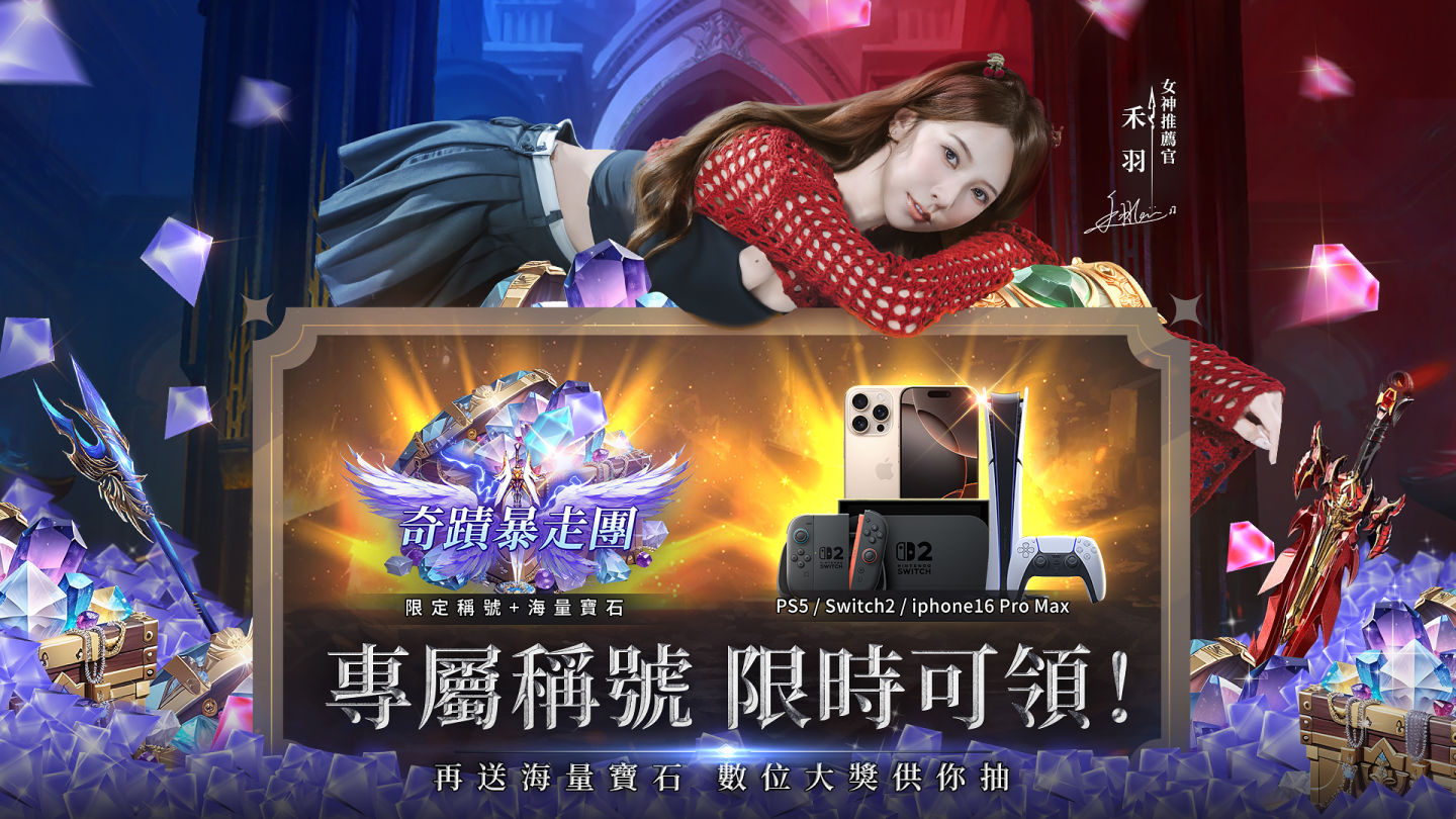 .完成手機號預約——必得限定稱號「奇蹟暴走團」,額外再送生命寶石+祝福寶石