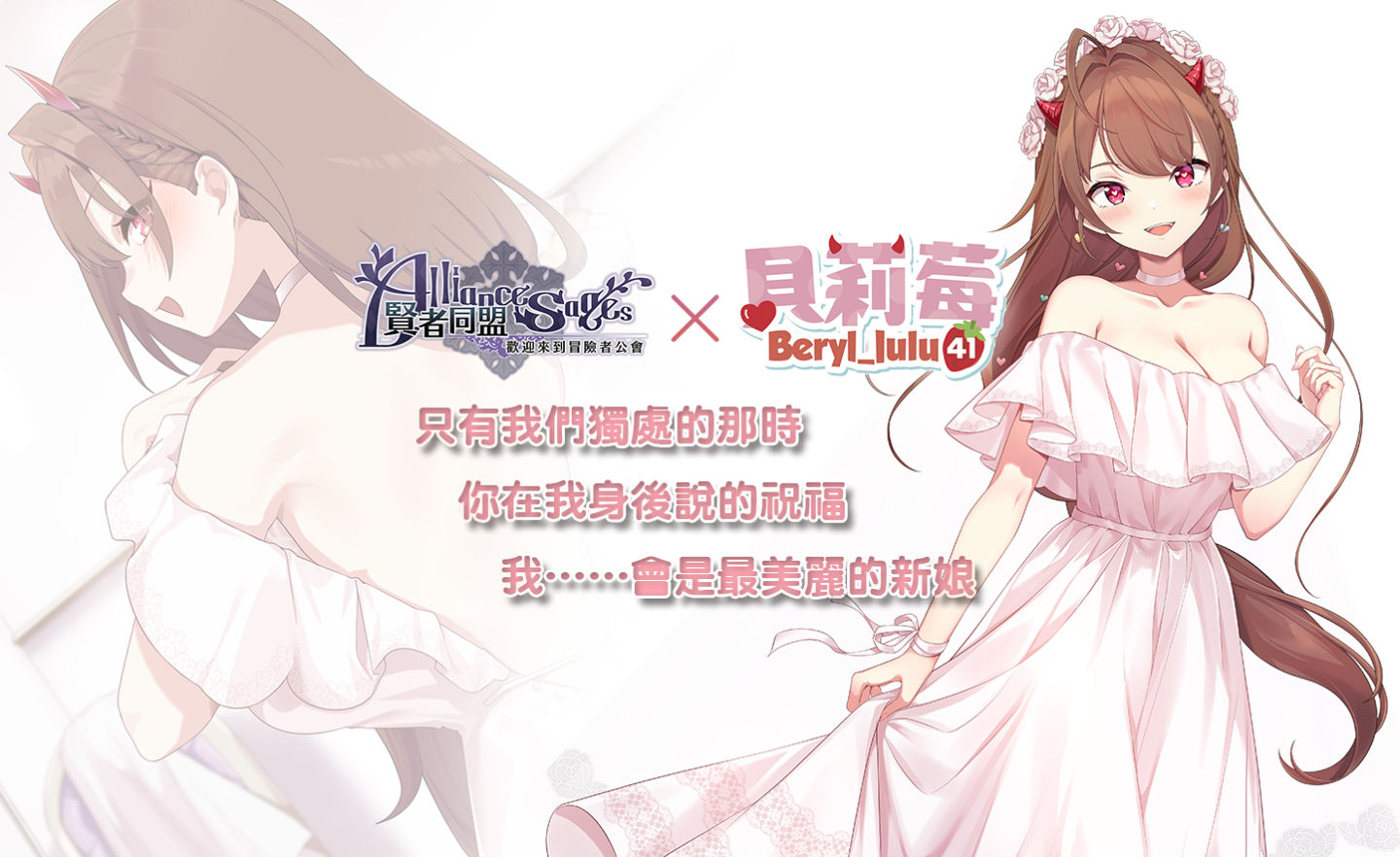 EROLABS 平台發行的成人手遊《賢者同盟》宣布,再次與擁有超過 35 萬訂閱數、稱霸台灣 Twitch 的「貝莉莓 Beryl」展開夢幻合作。本次合作中,貝莉莓將首度披上花嫁造型,並附加人妻屬性,為玩家帶來全新驚喜。