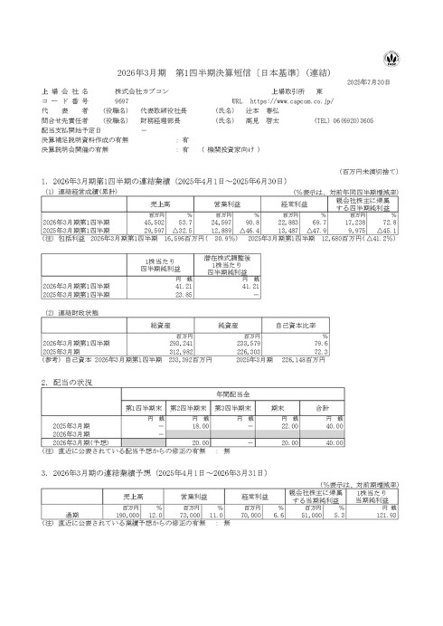 據財報數據顯示,卡普空在第一季度營業收入達 455 億 200 萬日圓,較去年同期大幅成長 53.7%。盈利方面表現更為突出:營業利益為 245 億 9700 萬日圓,同比增長高達 90.8%;經常利益為 228 億 8300 萬日圓,同比增長 69.7%;稅後純益則達 172 億 3800 萬日圓,同比增長 72.8%。卡普空表示為擴展全球市場,將持續強化數位銷售作為其核心成長策略。第一季度在全球 228 個國家地區,銷售 243 款遊戲作品。數位版總銷售套數達 1416 萬套,遠高於去年同期的 953 萬套。
