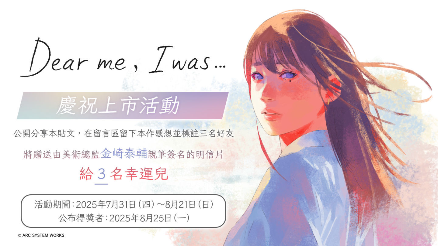 亞克系統亞洲 Arc System Works Asia 宣布,Nintendo Switch 2 專用軟體《Dear me, I was...》數位下載版於今日 2025 年 7 月 31 日(四)上市,並舉辦上市抽獎活動。