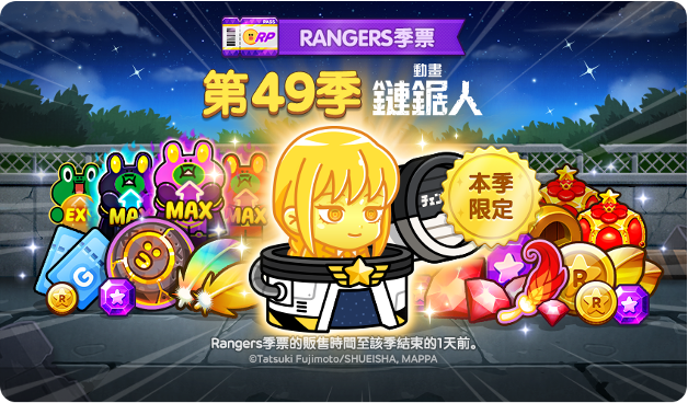Rangers 季票獎勵中,將會推出以電視動畫《鏈鋸人》的「真紀真」為主題的合作限定塔城造型。