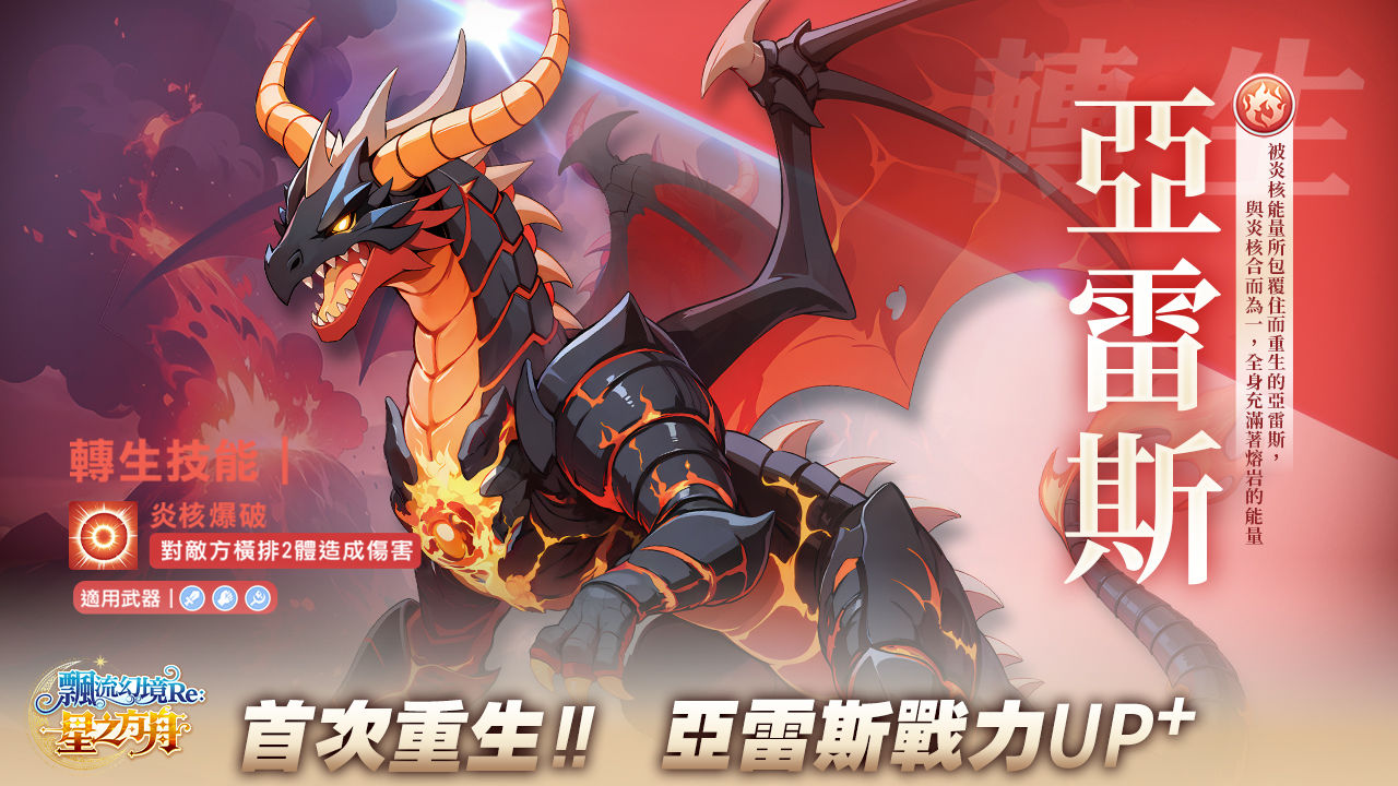 《飄流幻境 Re:星之方舟》今日遊戲維護後,備受玩家期待的「角色轉職」與「夥伴轉生」兩大重點功能系統同日上線,另外世界地圖「曼谷」也正式開放!還有全新的星靈夥伴「琳可絲」可愛登場、陪伴玩家踏上未知旅程!