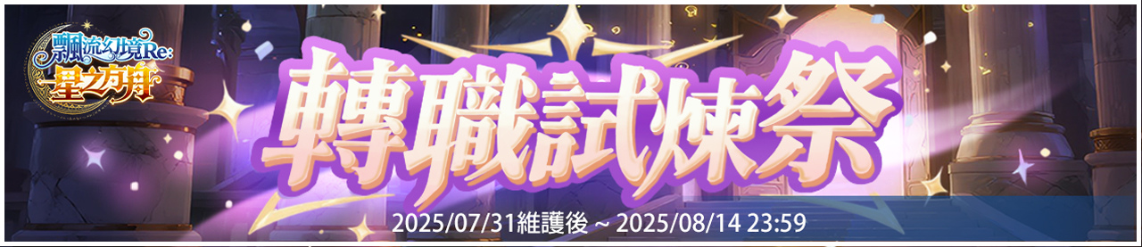 歡慶轉職試煉祭開跑,限時開放「試煉慶典七日簽到」活動!只要連續七天每日登入,即可領取豐富獎勵,包括聖水福袋、附魔卷、量子沙漏、幻境摸彩券等實用資源!