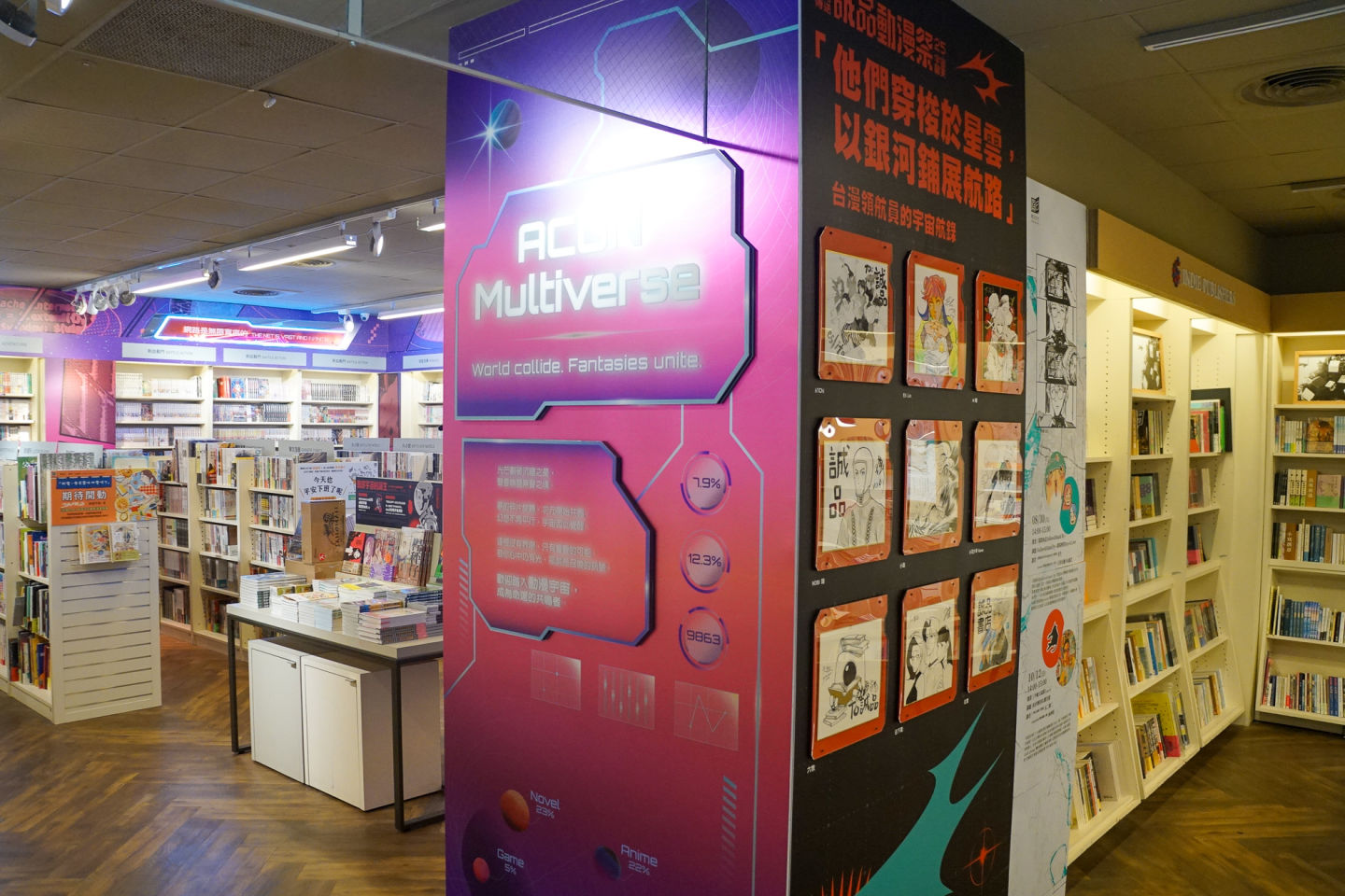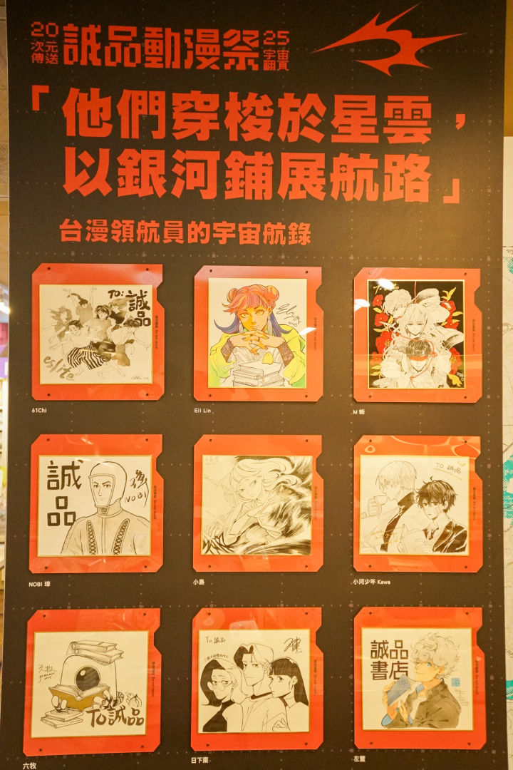 誠品 R79 同步進行全新改裝,推出「動漫宇宙」專區,帶領讀者深入二次元世界。現場展示日本國際漫畫賞金獎得主簡嘉誠、京都國際漫畫賞金賞得主常勝等逾20位台灣漫畫家的獨家簽繪。