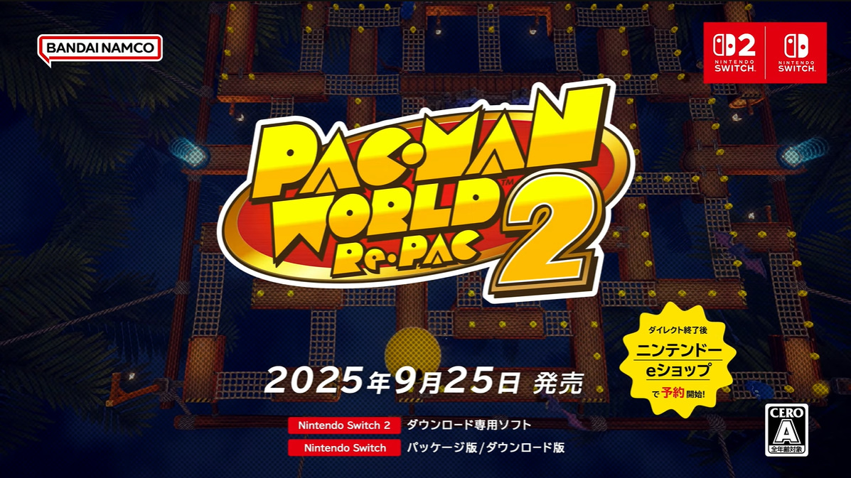 萬代南夢宮娛樂於今天「Nintendo Direct Software Maker Lineup 2025.7.31」節目中,公開玩家們期待已久的《Pac-Man 吃豆人》(舊稱:小精靈)系列最新作《Pac-Man World Re-Pac 吃豆人吃遍世界2》。目前本作預定將會於 2025 年 9 月 25 日起在 Nintendo Switch 2/Nintendo Switch/Steam 等平台推出。