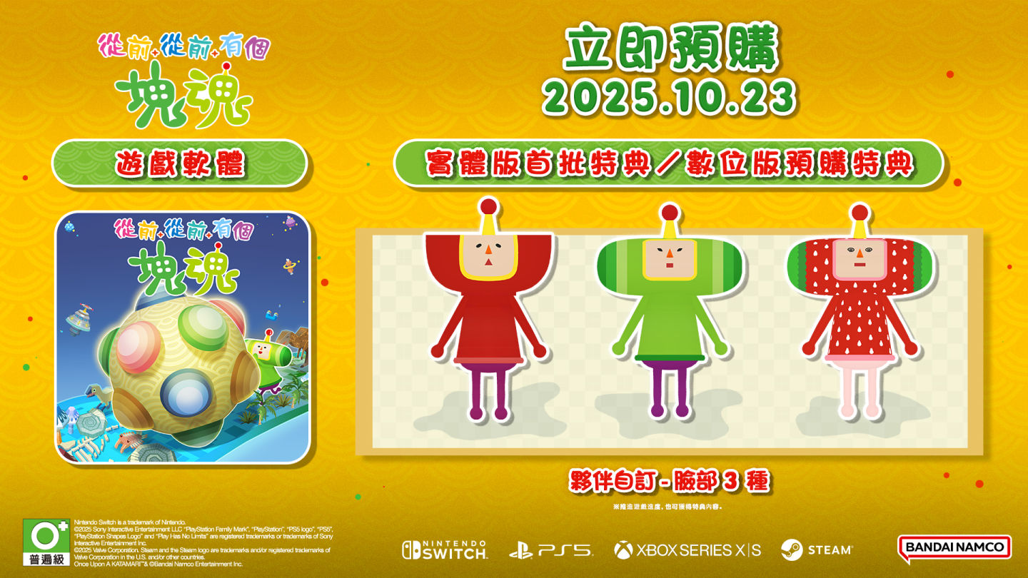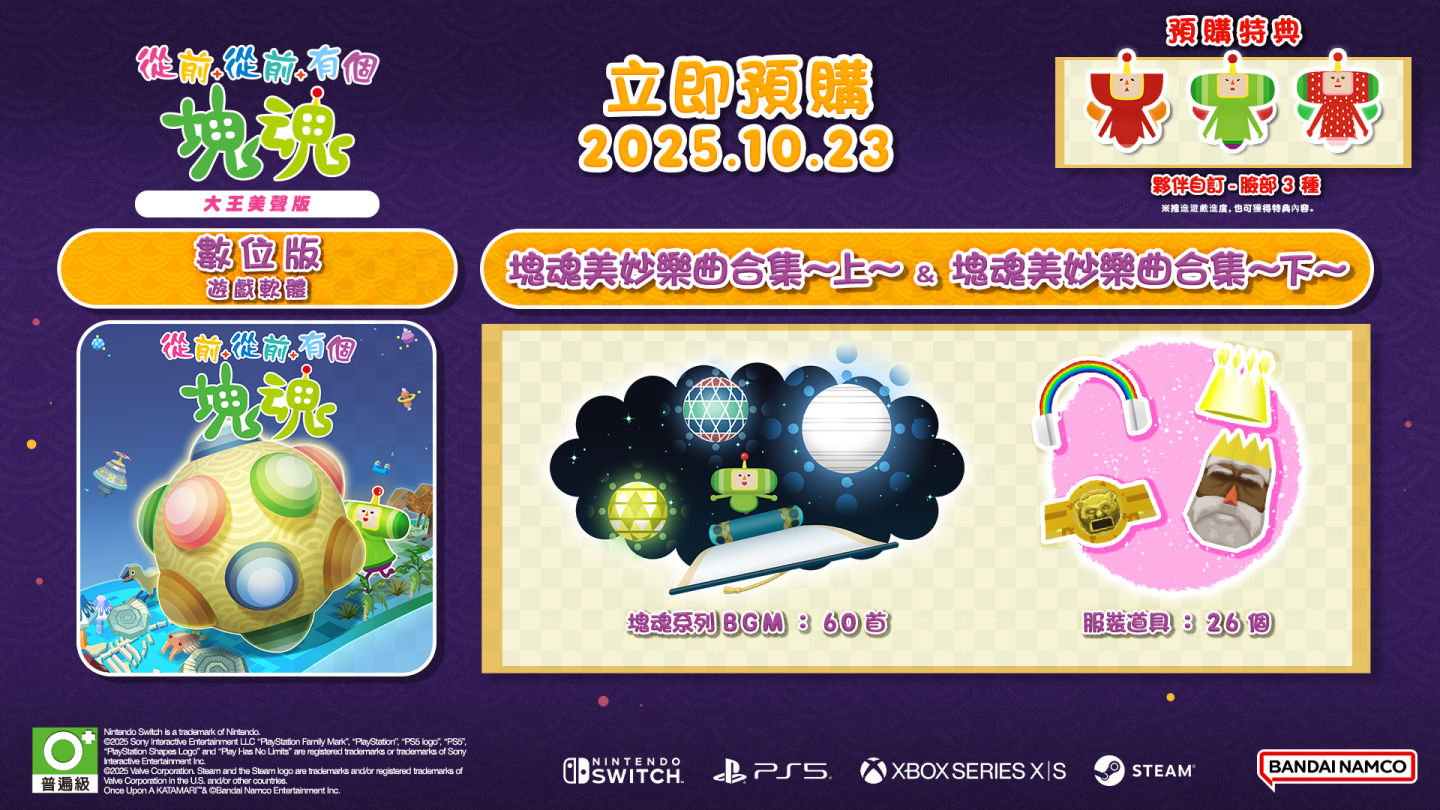 萬代南夢宮娛樂於今天「Nintendo Direct Software Maker Lineup 2025.7.31」節目中,公開人氣動作遊戲《塊魂》系列最新作《從前從前有個塊魂》(ワンス・アポン・ア・塊魂)。目前本作預定將會於 2025 年 10 月 23 日起在 Nintendo Switch/PS5/Xbox Series X|S、10 月 24 日在 Steam 推出上市。