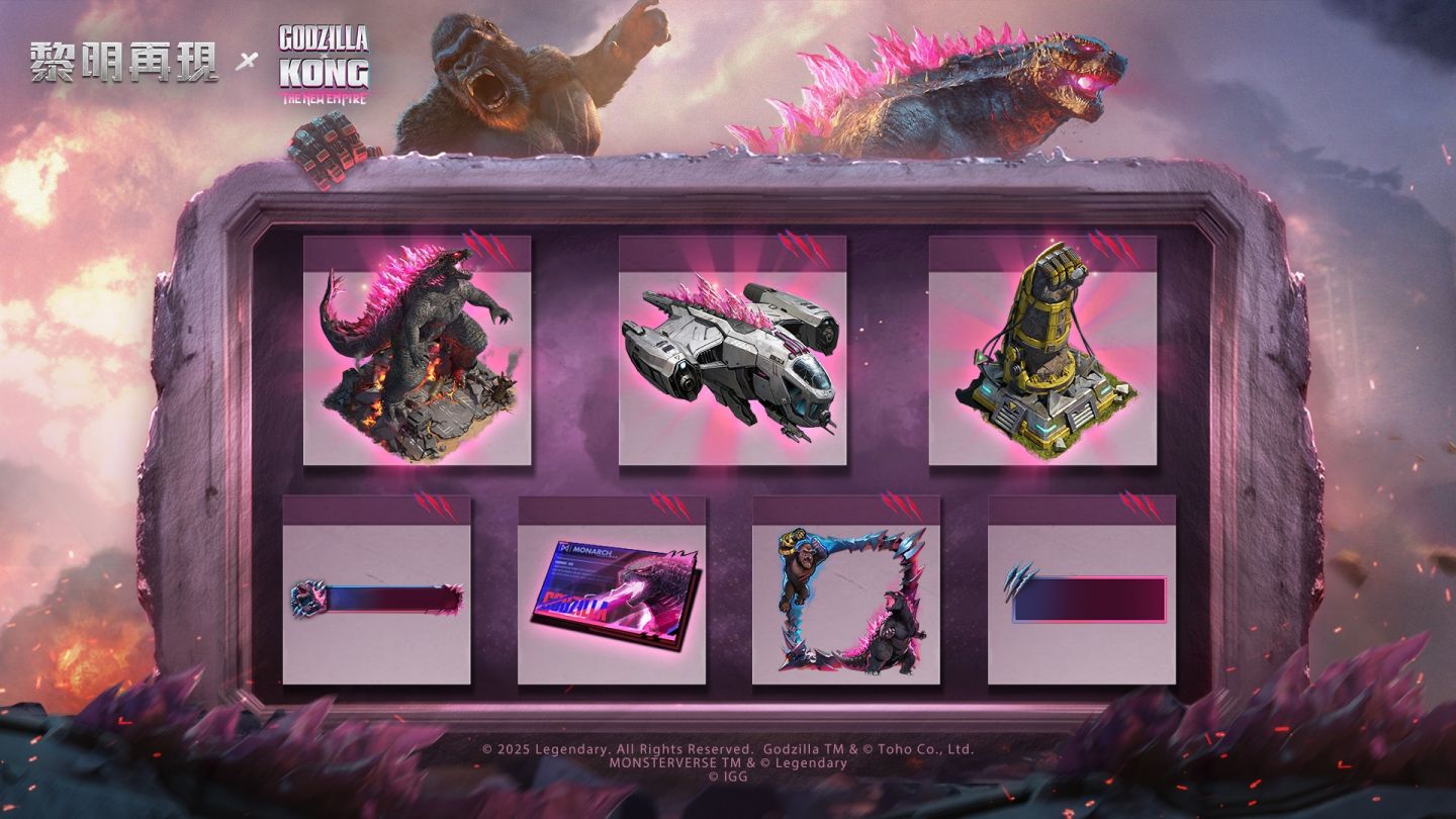 IGG 研發、台灣幻想娛樂獨家代理的喪屍題材末日生存即時策略手遊《黎明再現》,於 2025 年 8 月隆重宣布,將與 2024 年票房大片《哥吉拉與金剛:新帝國》展開史詩級聯動合作!