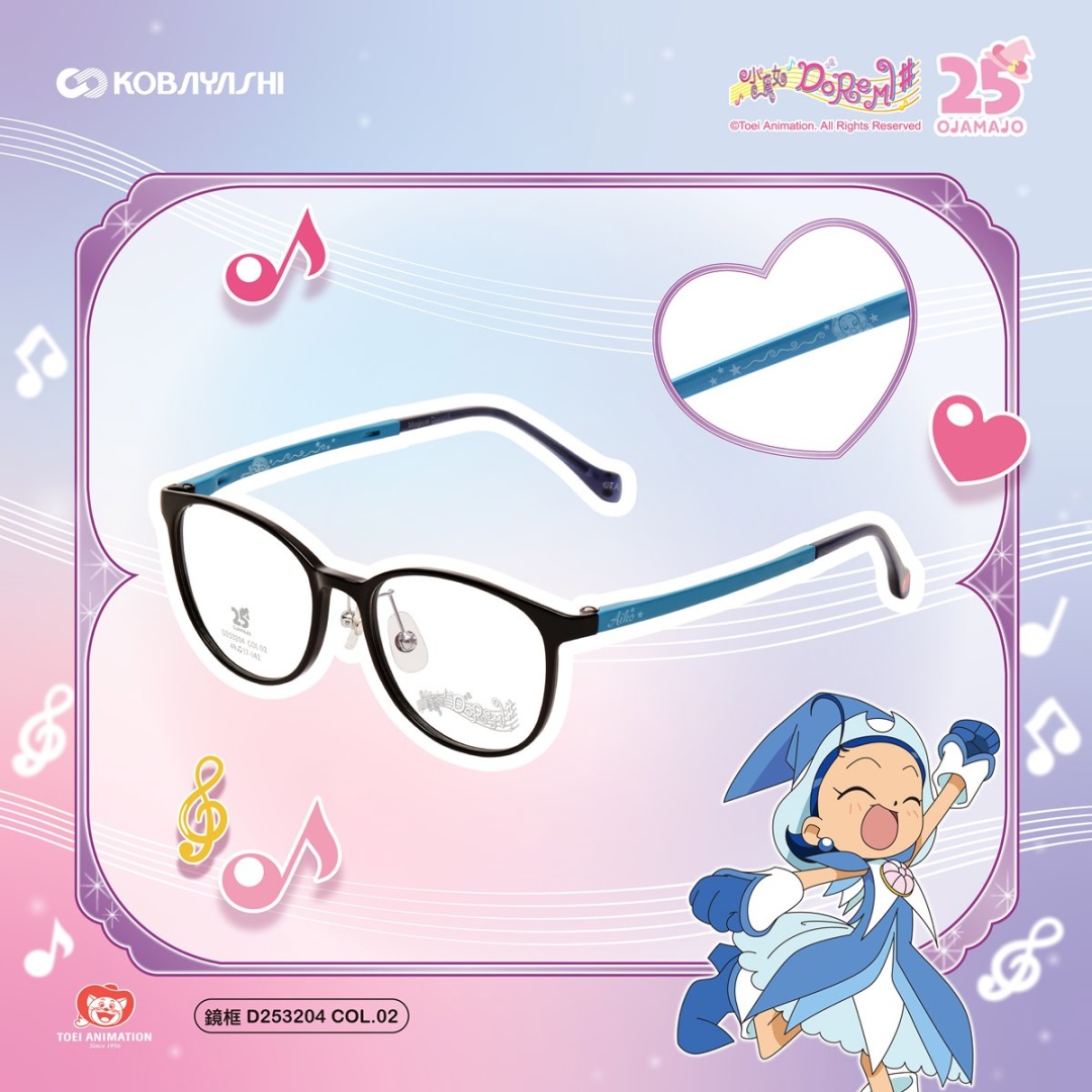 小林眼鏡首度與小魔女 Doremi 夢幻聯動推出兩大系列授權鏡框。「「魔女見習」全系列共 10 款,每款提供 2 種配色選擇,以 Ultem 框面搭配 TR 材質高清鏡腳,框型日常百搭,鏡腳內側有多款人氣角色的細緻圖案,除了有春風 Doremi、藤原羽月、妹尾愛子等的經典頭像,更推出「小魔女 Doremi-25週年水彩風格」款式,以柔和筆觸與透明感色彩,呈現溫暖又夢幻的氛圍。