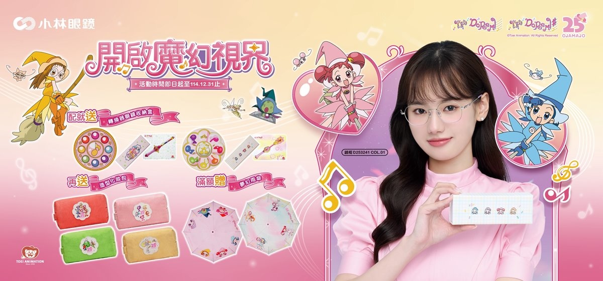除了首次帶來小魔女 Doremi 授權眼鏡,並提供最專業的技術與門市配鏡服務,更同步推出超多可愛贈禮!8 月 1 日起至 12 月 31 日活動期間,「魔女見習」系列眼鏡特價只要 NT$1,980 元起,「「魔女閃耀」系列眼鏡特價只要 NT$2,980 元起,輕輕鬆鬆為生活注入魔法。