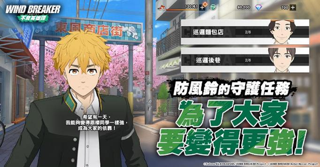 本作首款改編自《WIND BREAKER 防風少年》動畫的官方授權作品,可橫跨行動與 PC 雙裝置遊玩。遊戲由日本漫畫原作者にいさとる親自監修原創劇情,並集結動畫原班聲優演出,透過遊戲改編忠實還原了「風鈴高中」與各大勢力間的經典對決,搭配動畫級 3D 分鏡與熱血劇情,邀請玩家一同踏上守護街道、締結友情的成長旅程。