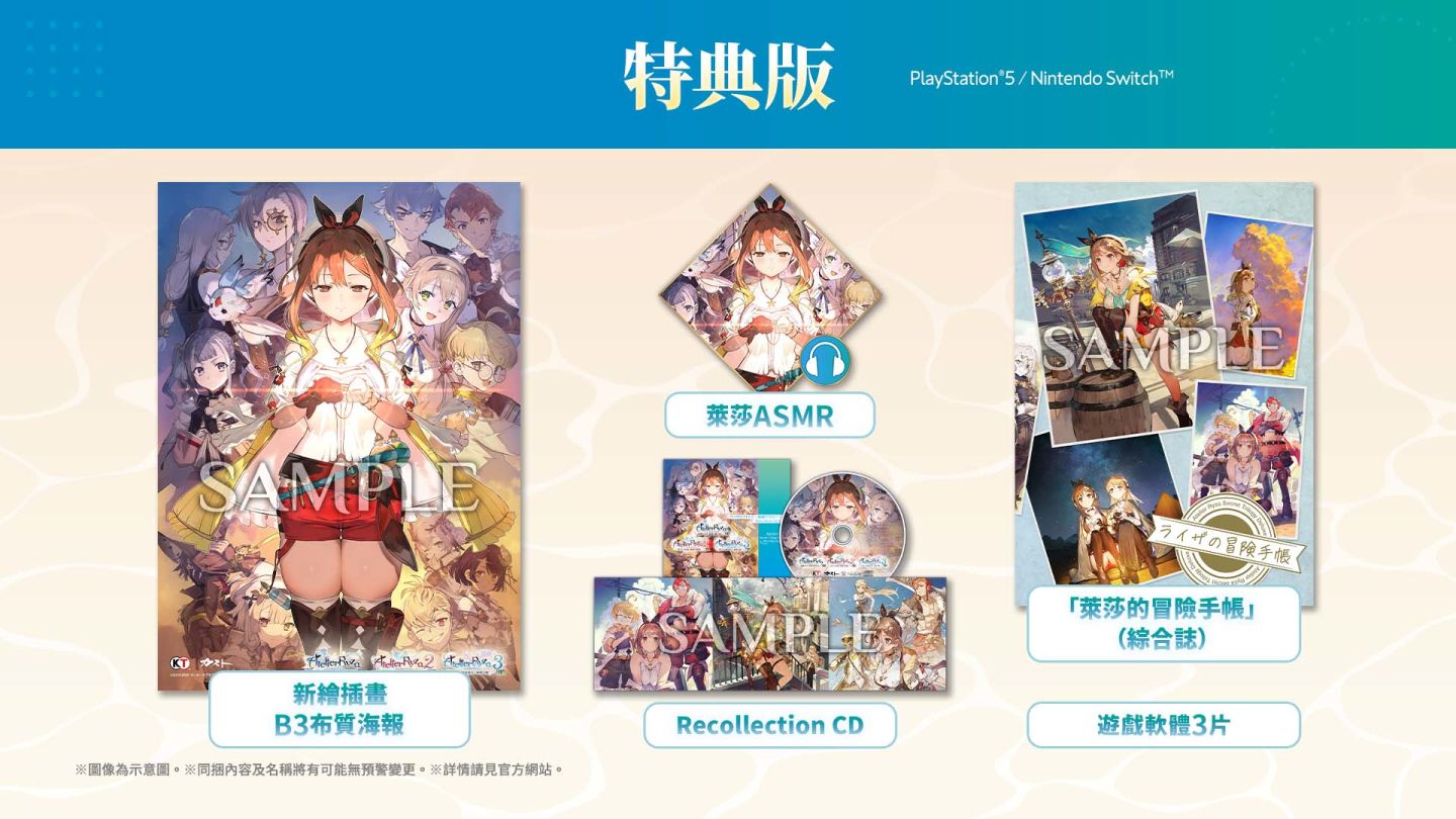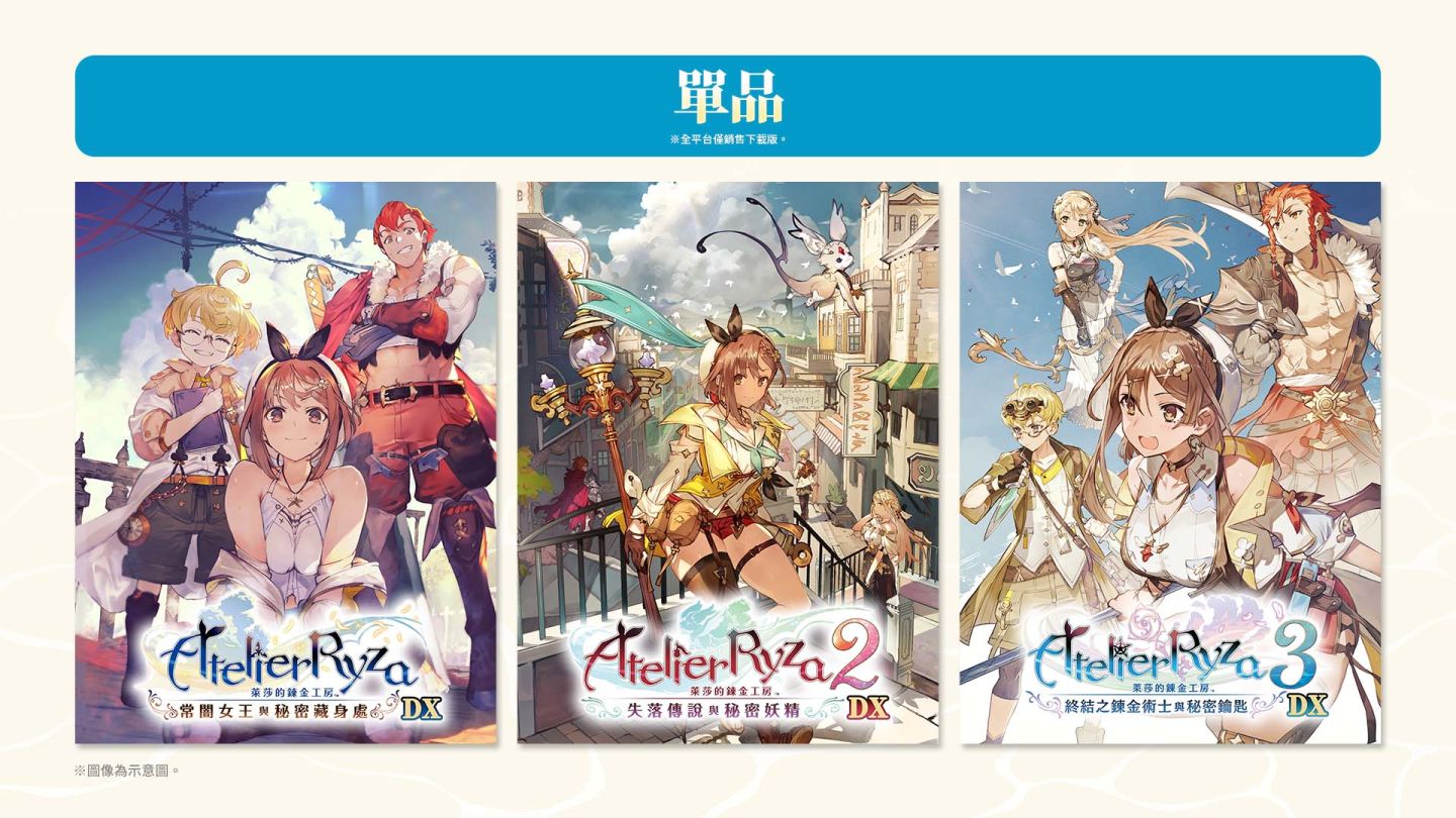 ※《萊莎的鍊金工房 DX》《萊莎的鍊金工房2 DX》《萊莎的鍊金工房3 DX》各作品取得特典所需的存檔資料,以及可獲得的特典內容皆不同。