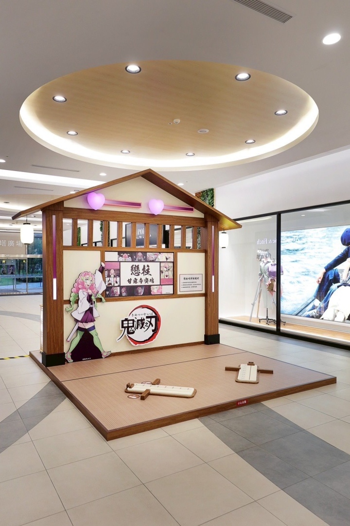 台南店呈現多個經典特訓場景,「霞柱時透無一郎─訓練場」結合木格窗與和式小屋元素,讓顧客擺出帥氣武打姿勢,與霞柱一起拍下氣勢滿點的訓練合照。「戀柱甘露寺蜜璃─柔軟度訓練」設有可愛又具挑戰性的坐姿體前彎裝置,邀請大小朋友體驗戀柱驚人的柔軟度!館內還有高達 3 米的「炭治郎」Q 版氣偶,與顧客共創夏日限定的萌趣回憶。