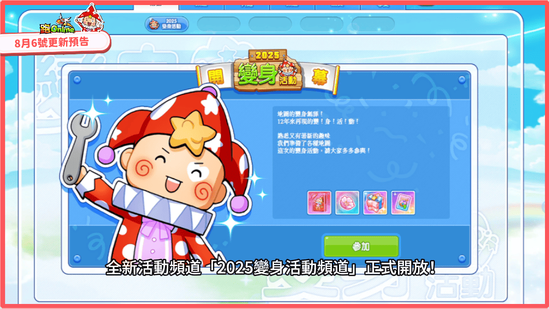 和信超媒體戲谷分公司宣布,童話風格競速遊戲《跑Online》2025 年變身活動正式啟動,全新「2025 變身活動頻道」全面開放!