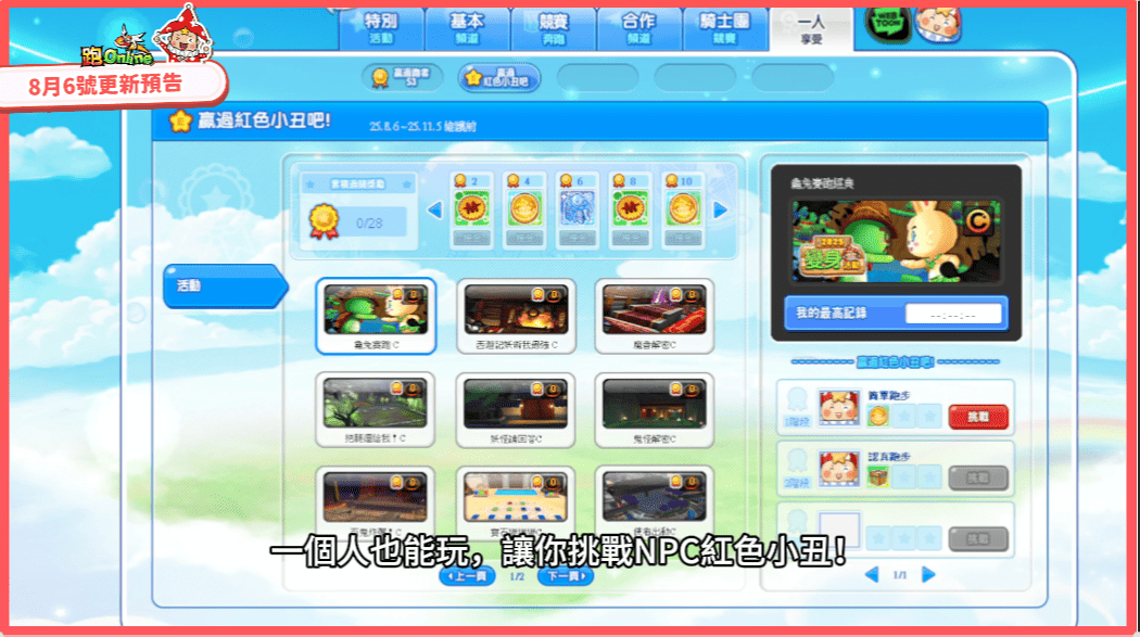 「贏過紅色小丑吧!」活動正式啟動,只要在活動期間挑戰並擊敗 NPC「紅色小丑」,即可獲得額外獎勵,連勝次數越高,解鎖的內容就越豐富!