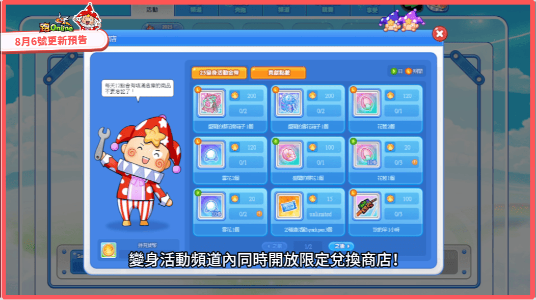 全新「2025 變身活動頻道」登場,玩家將隨機進入「翻轉」或「經典」地圖組,並體驗特定能力值限制的競速玩法,如起身時間加快、體力上限提升、碰撞閃避調整等。加入頻道即可領取獎勵!