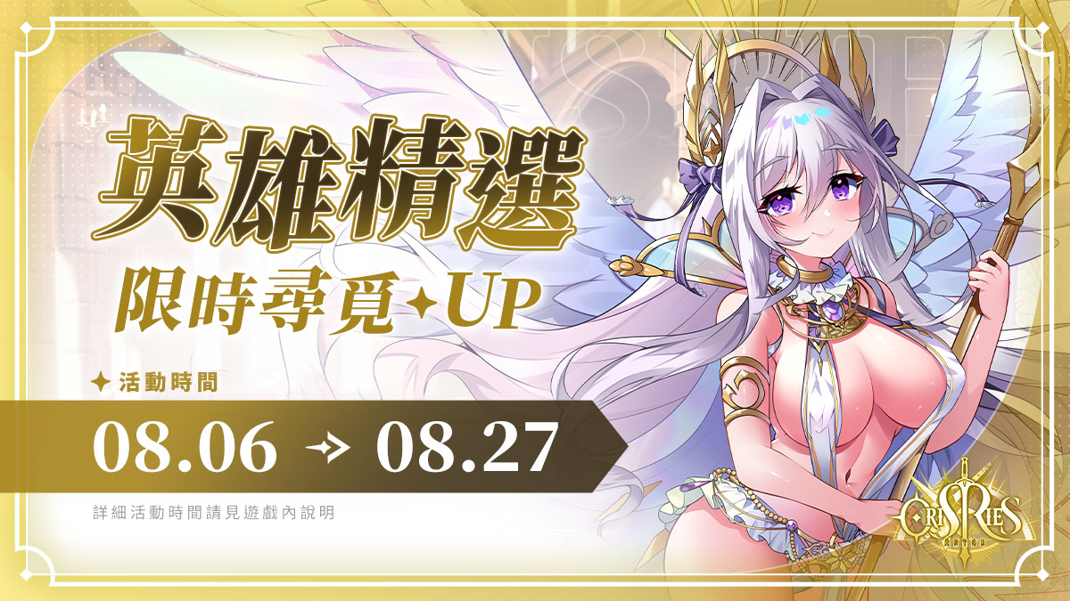 活動期間,玩家於「神恩禮贊:英雄精選」卡池中,限定 SSR 英雄:「烏莉」、「紅蓮」、「小鳥遊舞」、「忒托莉」、「艾梅莉雅」、「鬼小滿」尋覓機率大幅提升,玩家可使用「源晶」進行尋覓。