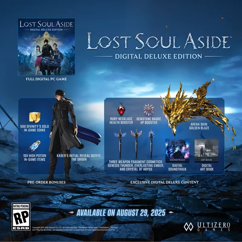 中國 Ultizero Games 開發、預定 2025 年內在 PS5/Steam 等平台推出的動作 RPG《Lost Soul Aside 失落之魂》,宣布將決定於 2025 年 8 月 29 日正式推出 PS5 版,至於 Steam 版則是預定 8 月 30 日上市。