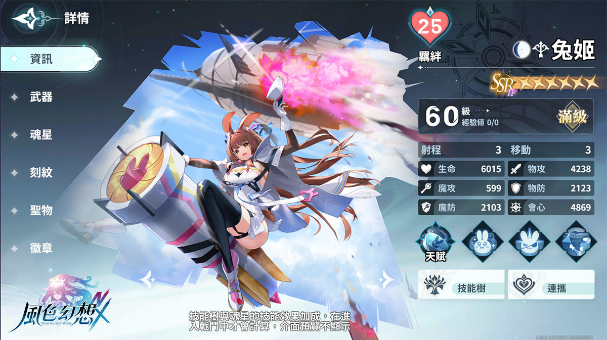 「兔姬」為遠程輸出的射手,透過天賦技能「惡兔重工」獲得專屬資源「D.R.L」,可替代行動點施放六種技能,兼具靈活性與輸出效率。奧義技能「兔子大危機」可補充資源,還能對全場敵人造成毀滅性傷害,展現爆發優勢。