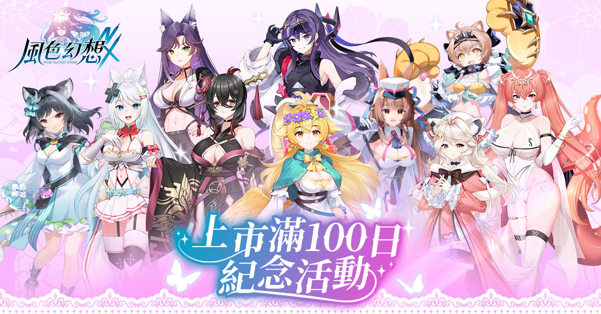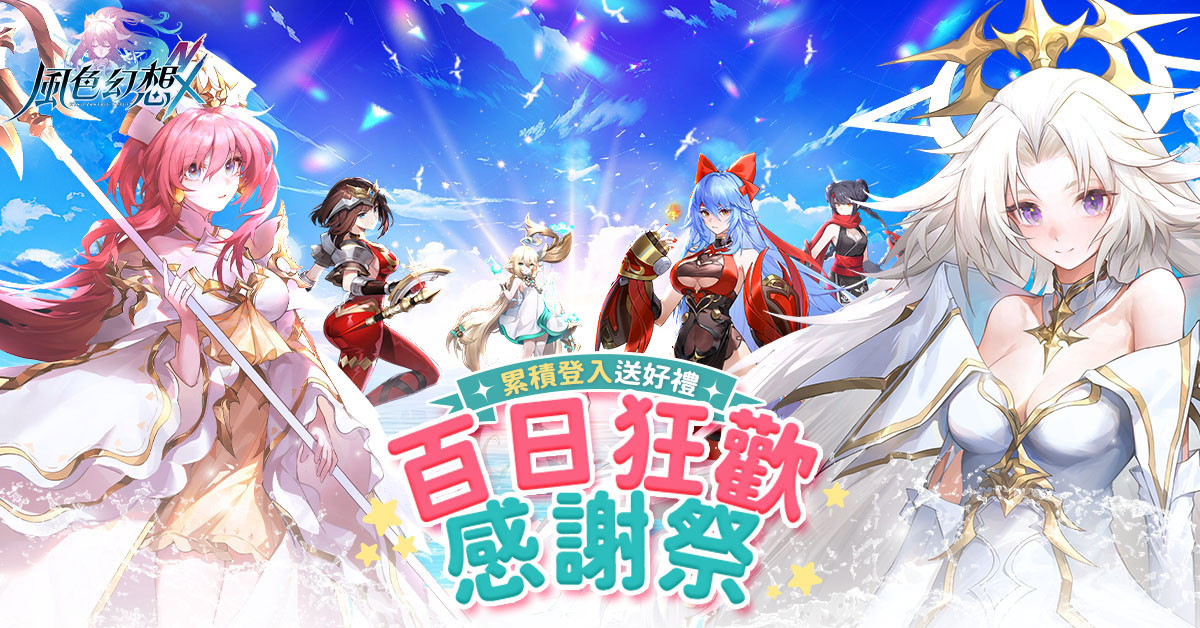 歡慶上市滿 100 天,官方推出「百日幻想感謝祭」系列活動,完成指定任務可獲得 VTuber 角色/徽章自選券、《風色幻想》SSR 英雄/徽章自選券、次元魂星碎片、300 抽等豐厚獎勵。
