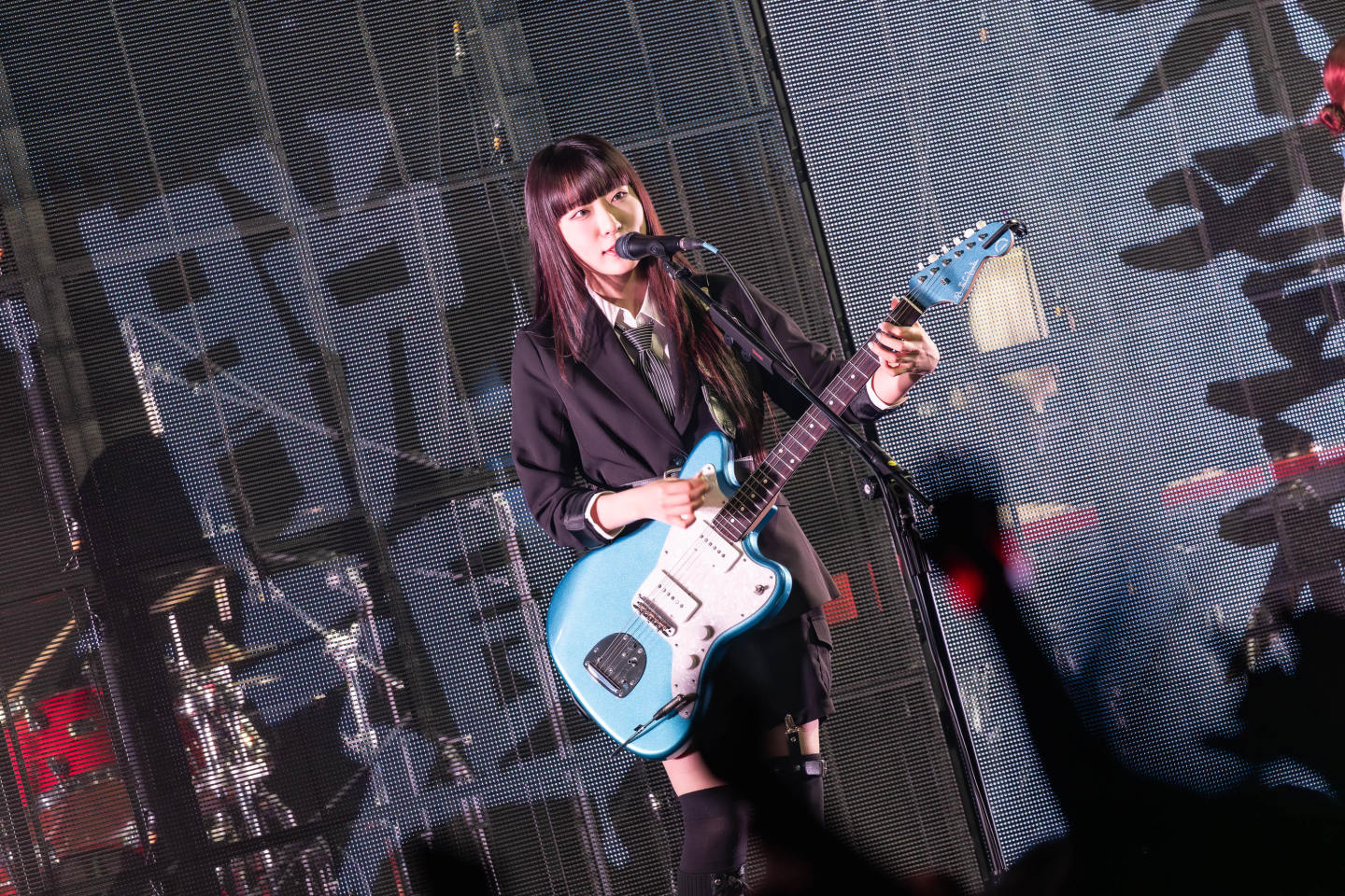 開場後,三位成員先以中文問候。主唱理名(井芹仁菜役)笑著說:「大家好,我來自日本廣島,今年17歲,跟仁菜同年喔!說到台灣就是珍珠奶茶啦,天氣熱的時候來一杯真的超適合!」她也透露最期待出國能吃到美食,「今天是第一次在台北演出,請大家好好享受!」