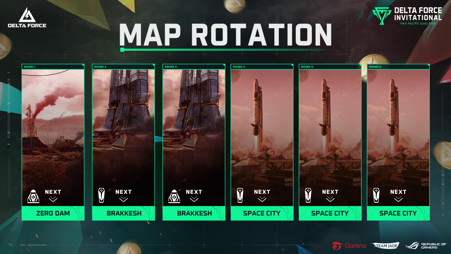 本次賽事地圖輪替包括:絕密零號大壩、絕密巴克什與絕密航天基地。第一與第三局不產出曼德爾磚,改為於地圖隨機位置掉落空投艙,內含高價值物資,以及唯一能透過空投艙取得的 AWM 狙擊槍。其餘場次皆可爭奪曼德爾磚,率先取得兩顆者即可封關奪冠。