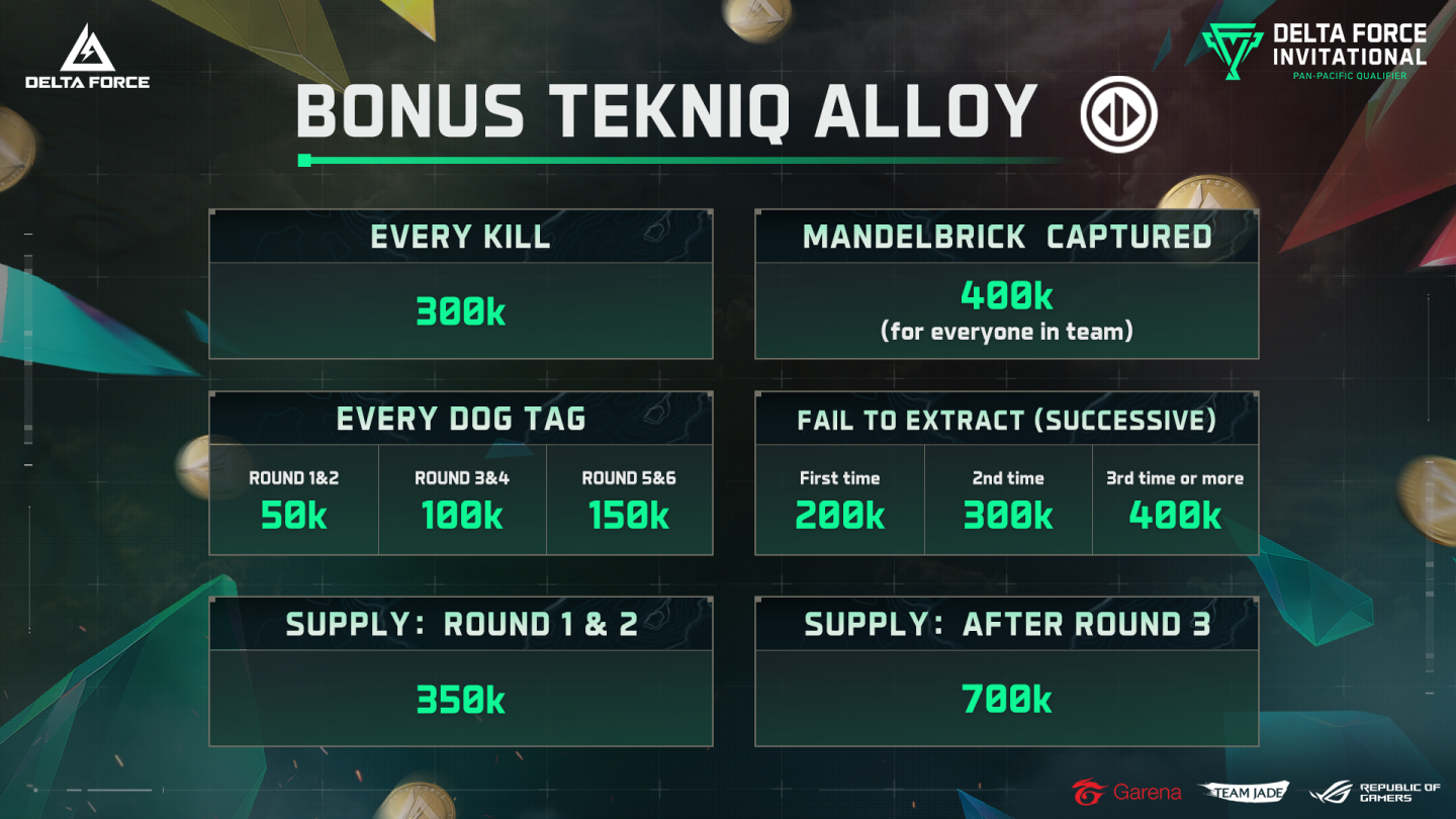 累積資產除了透過搜索地圖內物資外,還可以透過擊殺、取得曼德爾磚、連敗補償及固定補給等方式,強化攜入下一局的裝備。