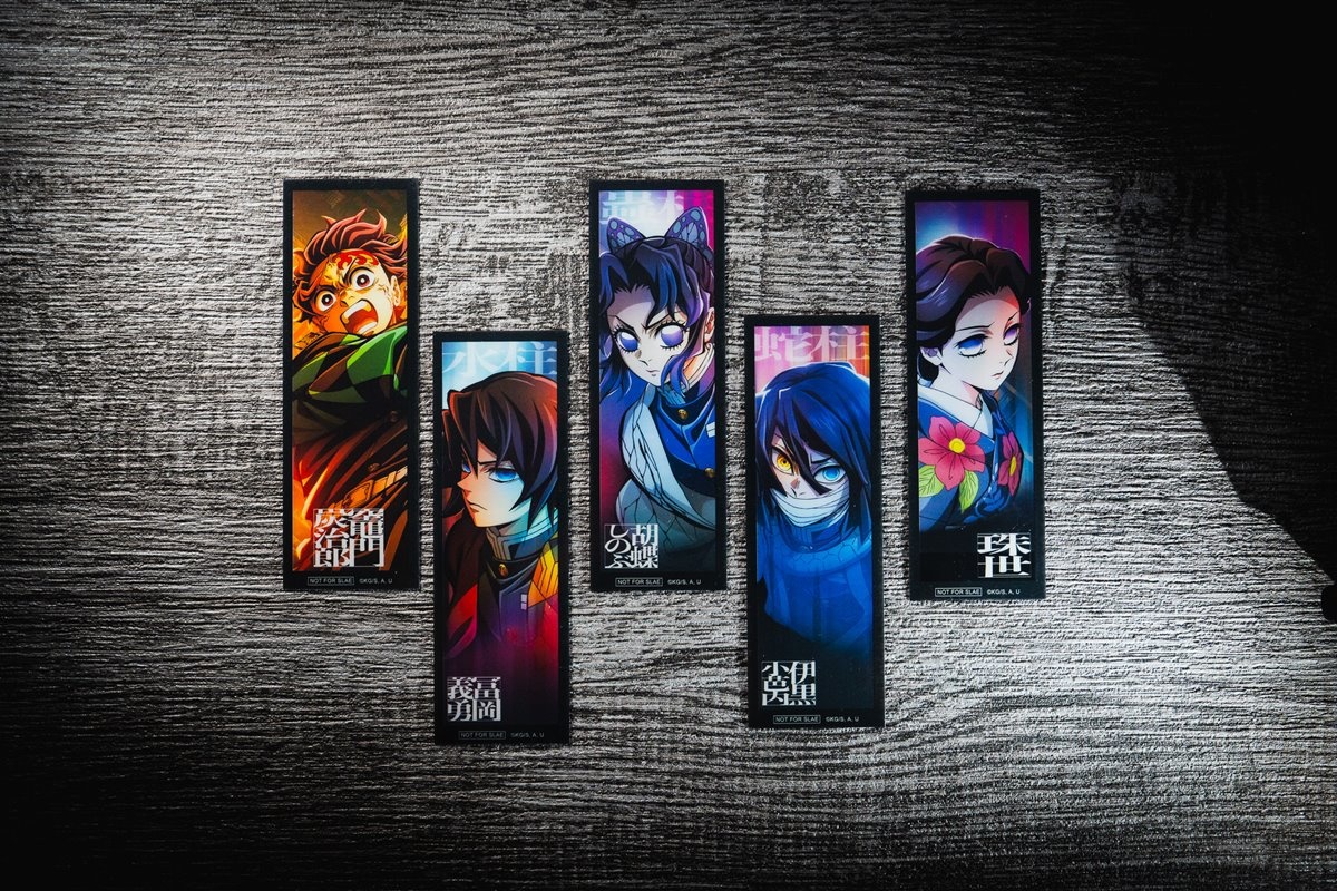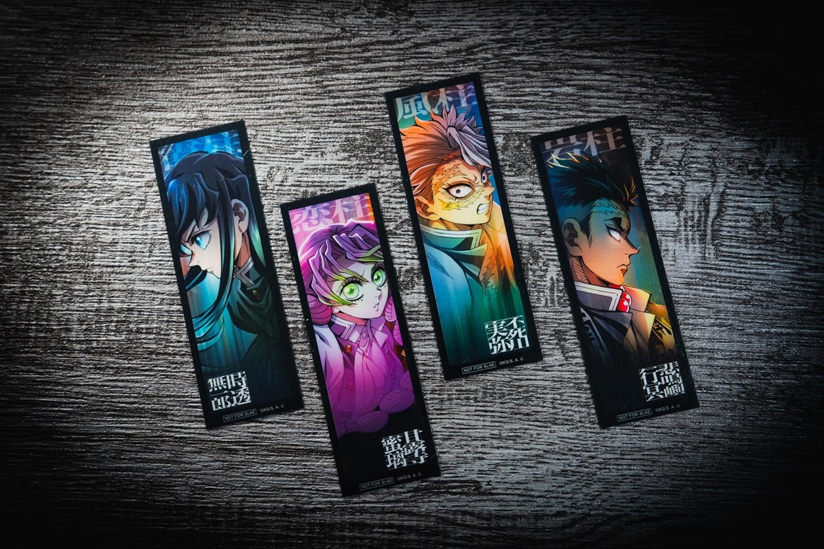 2D版本的第二週特典為「透明書籤」第一彈,共五款角色設計,包含竈門炭治郎、水柱冨岡義勇、蟲柱胡蝶忍、蛇柱伊黑小芭內及珠世;第三週則收錄霞柱時透無一郎、戀柱甘露寺蜜璃、風柱不死川實彌與岩柱悲鳴嶼行冥,隨機方式贈送乙款,透明書籤皆以高質感透明材質印刷、設計精緻細膩,數量有限,送完為止。