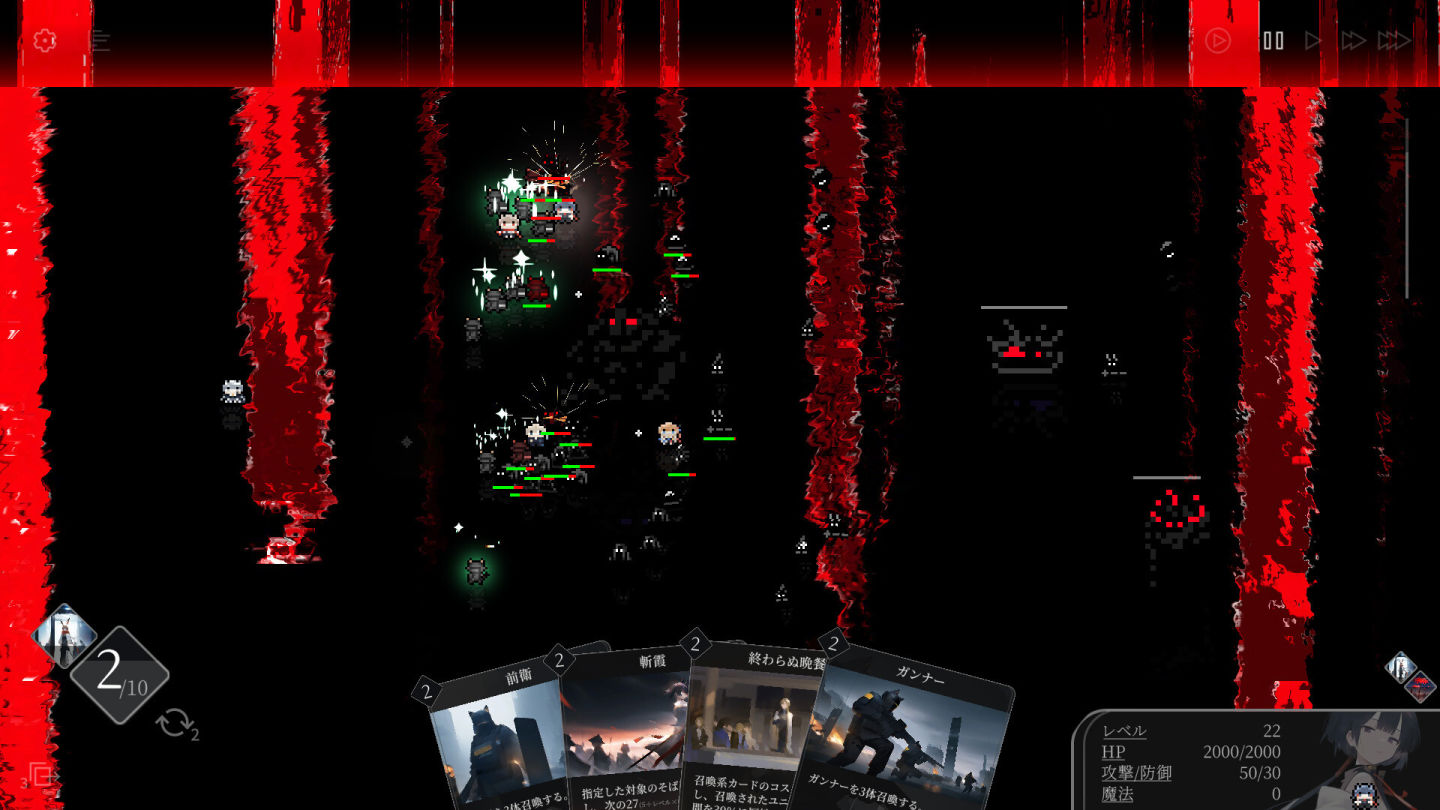 在遊戲中,玩家將扮演一位站在十字路口的主角,在一次次戰鬥中,逐步追溯這個世界的軌跡。遊戲戰鬥將會以半自動方式進行,玩家需要在戰鬥中打出技能卡牌,決定最關鍵的時刻。在混亂的局勢中,掌握節奏、分配資源、贏得勝利。