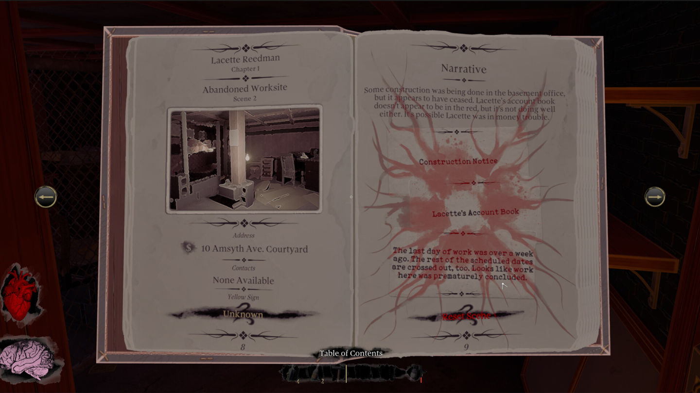 在這裡,瀰漫著記憶的餘毒、邪教的殘影,以及某種更古老的存在。隨著名為「Yellow Wound 黃傷」的傳染病蔓延,主角也意外染上病症。玩家將在終點城街道下、存在著私酒販、邪教徒,還有與主角一樣病入膏肓人們的腐敗地下世界裡展開調查。隨著探索不斷深入,主角的症狀也在變化:視線模糊、幻聽虛聲、房間移形換位……但這些病症能被研究、被利用、甚至被武器化。玩家需要學會適應,否則將會被吞噬。