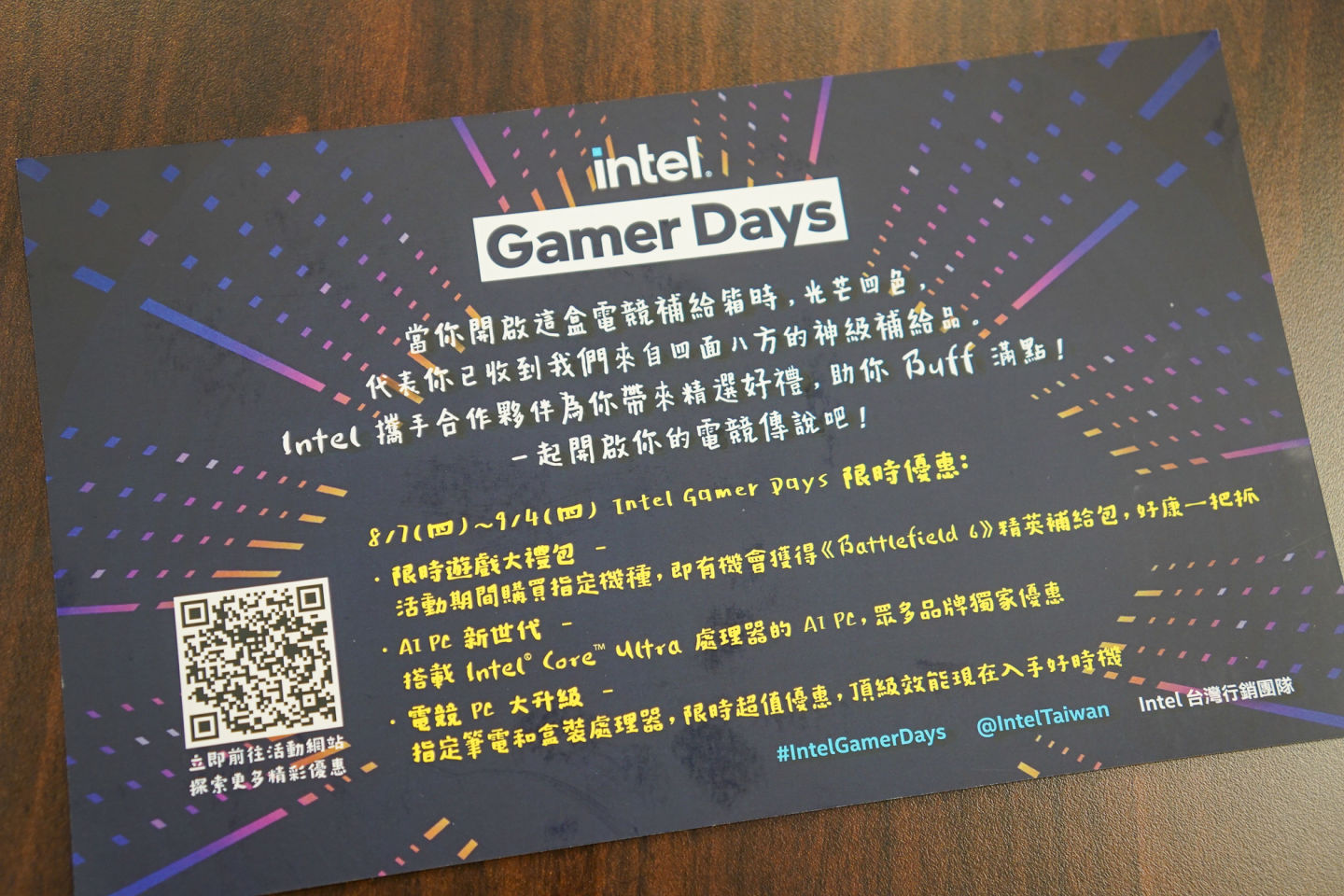 年度 PC 硬體盛事「Intel Gamer Days」(IGD)已於 8 月 7 日正式展開活動將持續至 9 月 4 日,Intel 聯合多家電競品牌與通路,在台推出一系列針對電競 PC、AI PC 的限時優惠。更與尚未上市的軍事射擊遊戲大作《戰地風雲 6》推出獨家「精英補給包」作為搭售贈品。