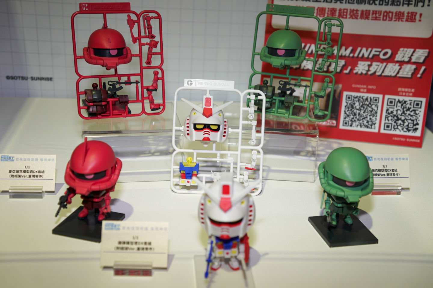 為紀念「鋼彈W系列」30週年推出的RG、EG飛翼鋼彈零式,「水星的魔女」MGSD風靈鋼彈,以及「機動戰士Gundam GQuuuuuuX」等最新鋼彈模型也同步展出。