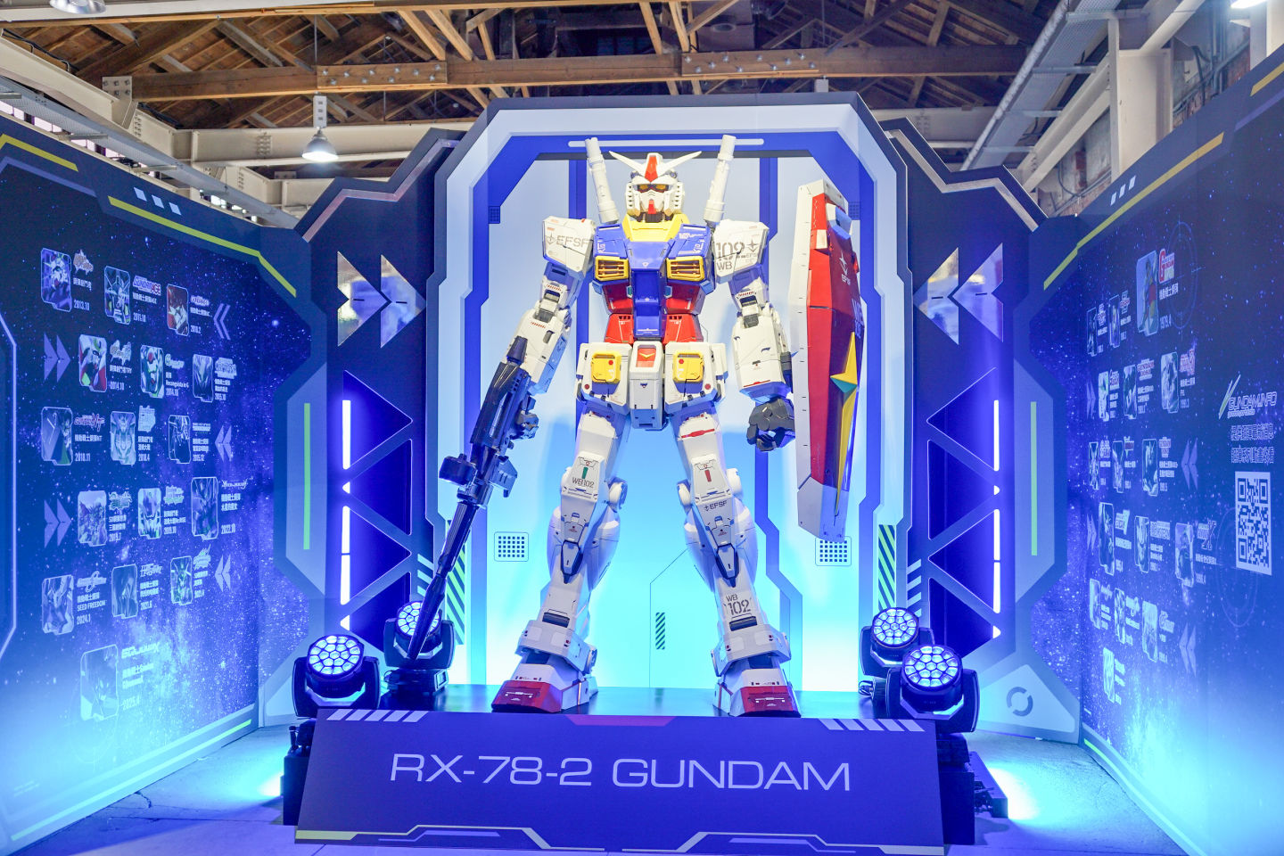為慶祝鋼彈組裝模型邁入45週年,台北場展出了一座以鋼彈模型最高規格PG UNLEASHED RX-78-2 鋼彈為原型所打造的3米高巨型立像,其經典的配色與帥氣姿態重現了鋼彈的英姿,以標誌性的威武氣勢成為展場最受矚目的拍照亮點 。