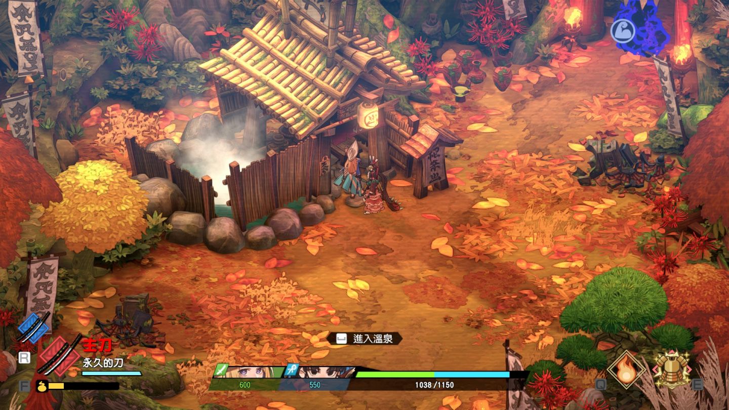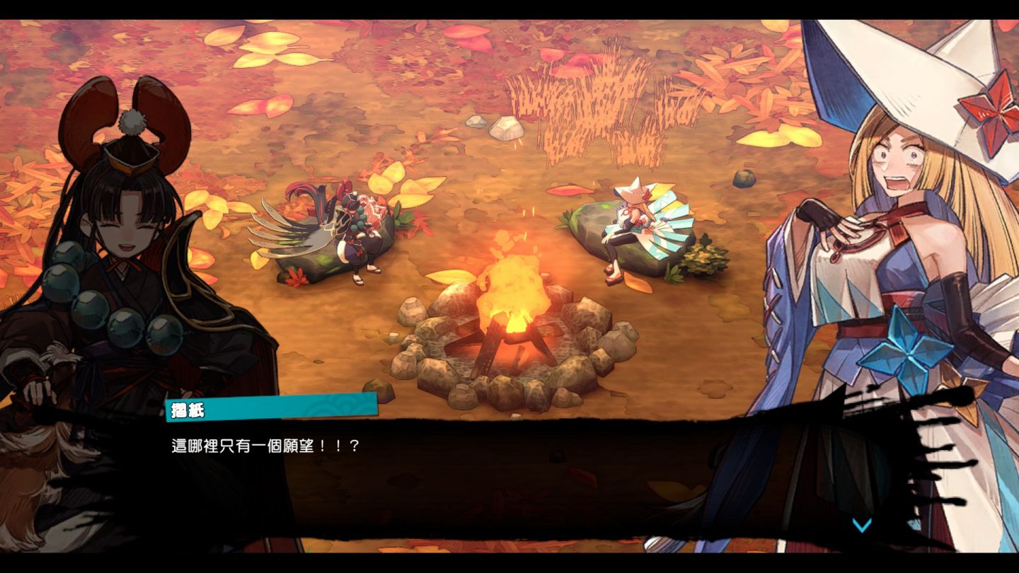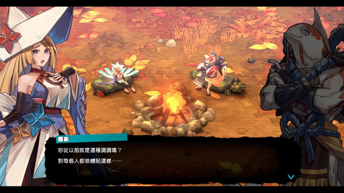 在迷宮探索過程中,除了自由選擇不同區域戰鬥獲得祝福增亦效果之外,還有溫泉區與營火區的設計,中場休息的營火區。在此處玩家所選擇的劍役與神樂役將會展開專屬的對話事件,根據日前製作團隊的訪談透露,遊戲為所有角色的任意組合都準備了多段對話,可能就是在此展現多種組合,鼓勵了玩家嘗試不同的隊伍組合,以解鎖所有互動劇情。