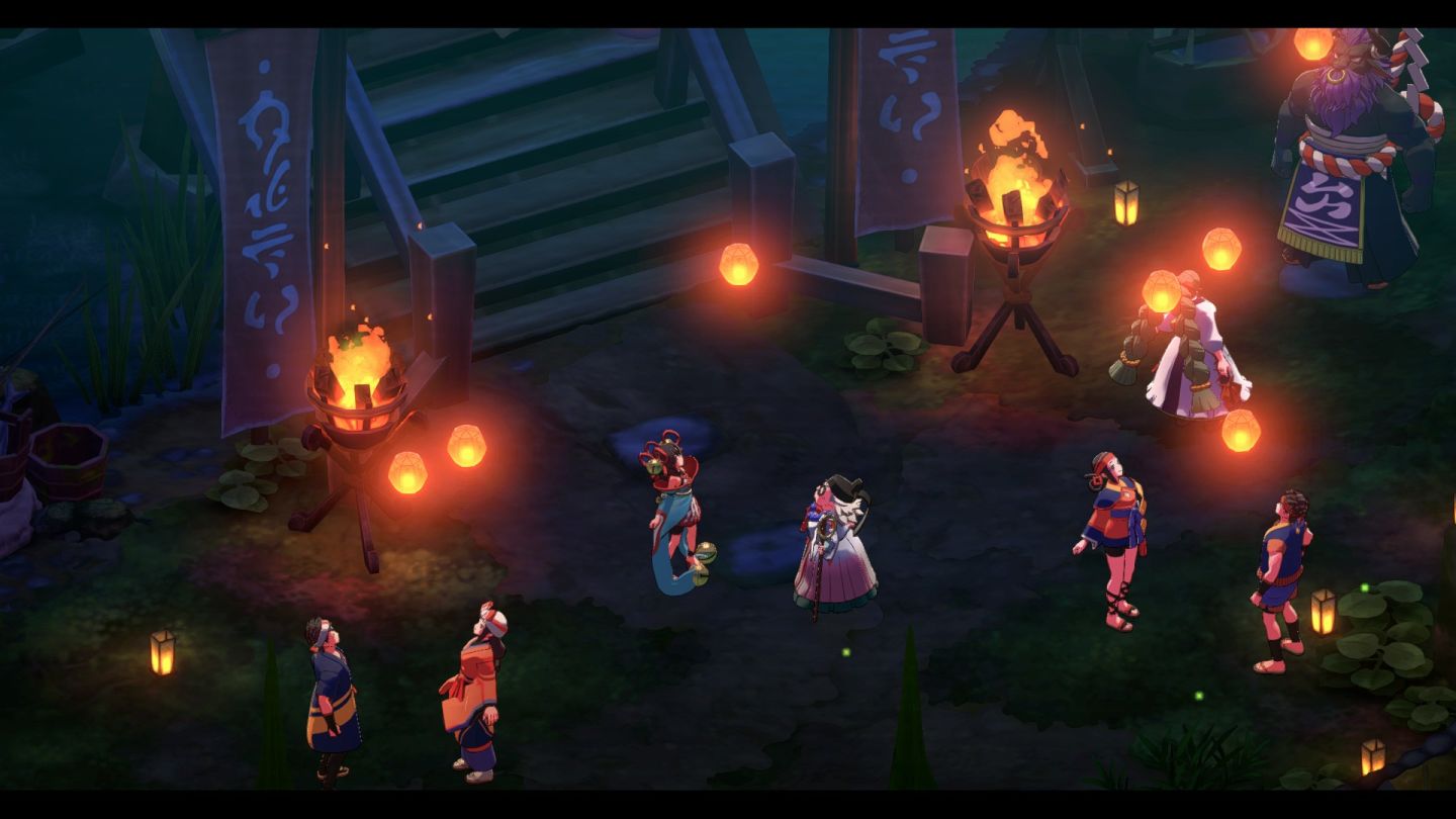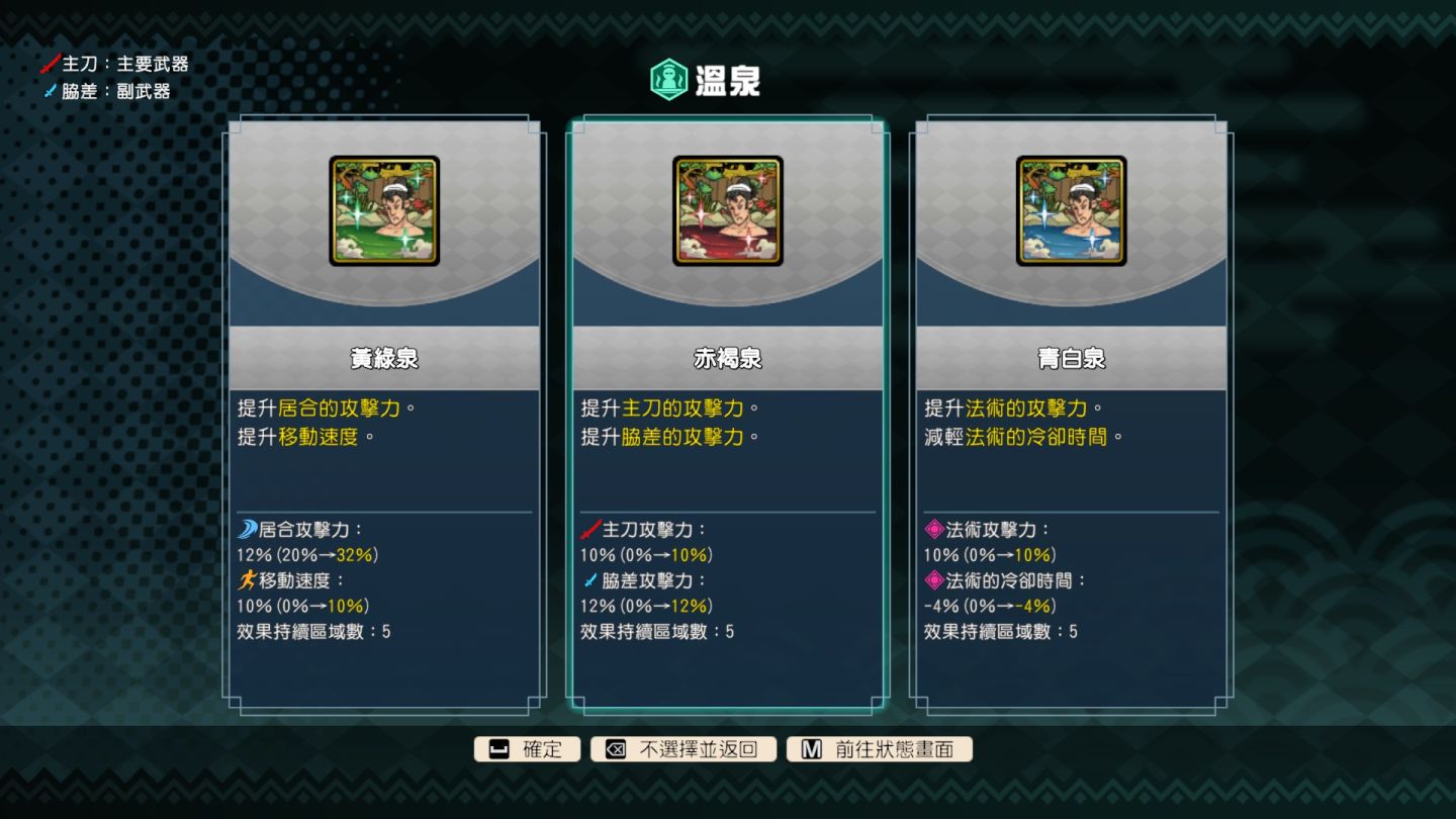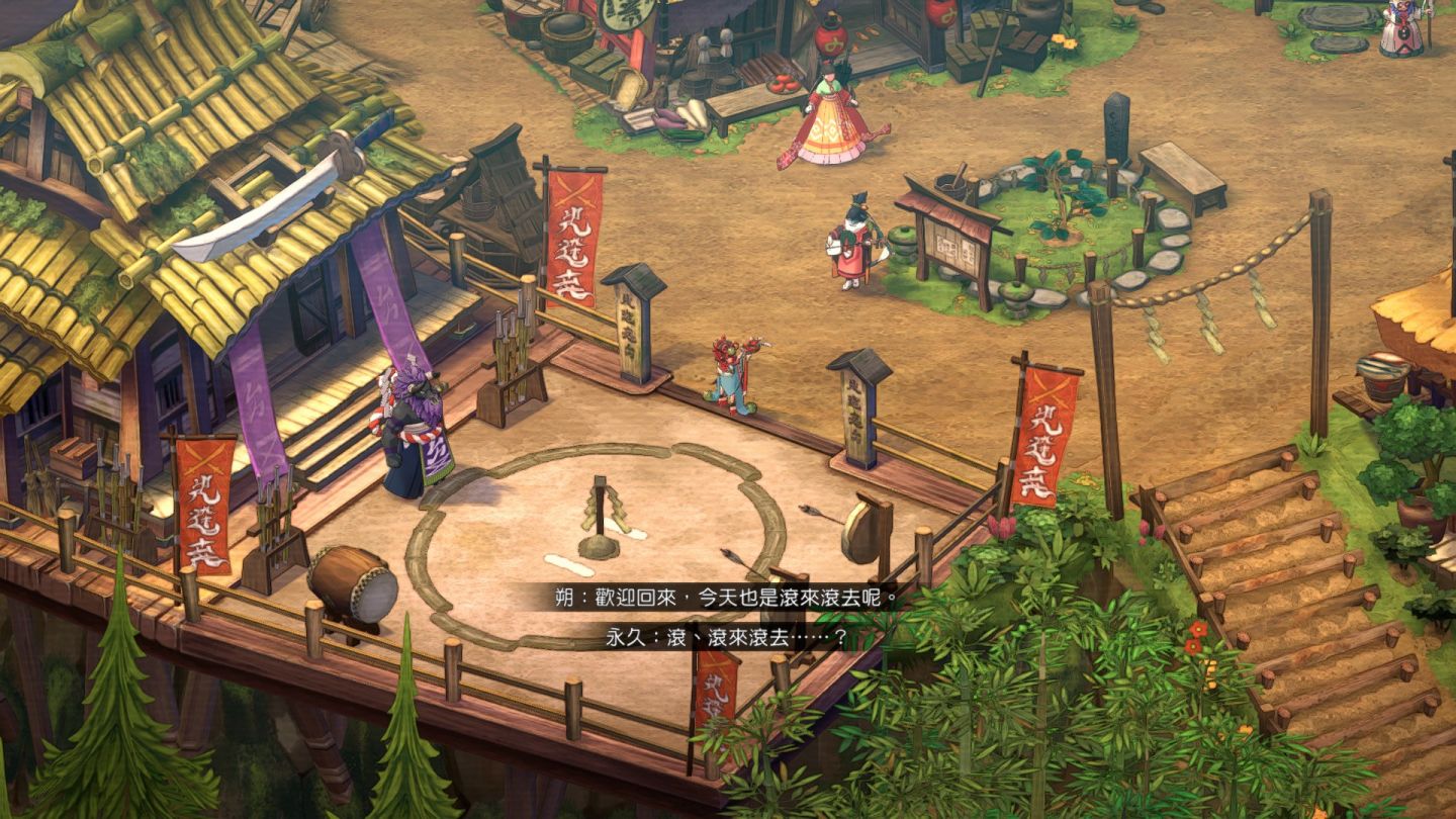 在迷宮探索過程中,除了自由選擇不同區域戰鬥獲得祝福增亦效果之外,還有溫泉區與營火區的設計,中場休息的營火區。在此處玩家所選擇的劍役與神樂役將會展開專屬的對話事件,根據日前製作團隊的訪談透露,遊戲為所有角色的任意組合都準備了多段對話,可能就是在此展現多種組合,鼓勵了玩家嘗試不同的隊伍組合,以解鎖所有互動劇情。