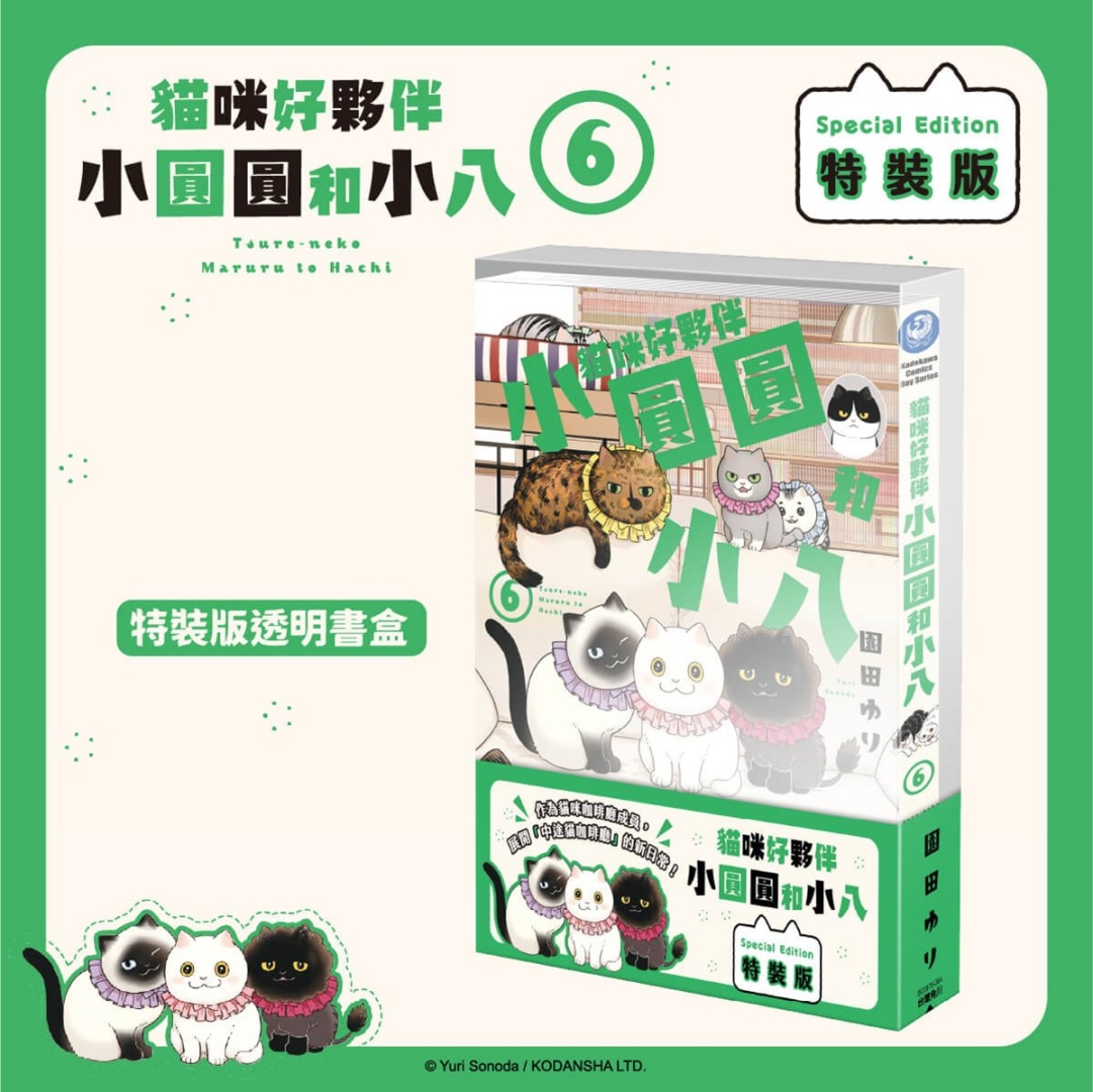 本作自連載以來,以細膩溫暖的筆觸描繪三丁目的浪貓們之間情感羈絆,在日本及台灣皆擁有高人氣,社群討論度居高不下。延續滿滿笑淚交織的故事,小圓圓與夥伴們來到「中途貓咖啡廳」展開新的故事!第6集將於11月在台發售,並同步推出可愛度破表的萌喵特裝版,自即日起至 9 月 9 日(二)開放限期預購。