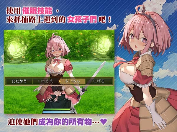 即便是隨便給予的「催眠」技能,依舊擁有強大的能力!不僅對敵方使用時能一擊必殺,對女孩子使用的話,還能直接讓他們變成自己的「僕人」,跟著自己一起冒險,並隨意做愛!