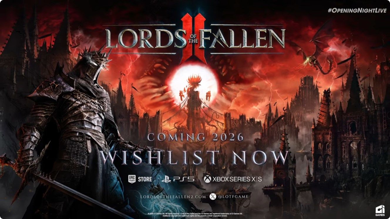 CI Games 於今天清晨科隆電玩展 gamescom Opening Night Live 2025 開幕夜節目中,正式公開自家開發的新作動作 RPG《Lords of the Fallen 墮落之王2》。目前本作預定將會於 2026 年內在 PC/PS5/Xbox Series X|S 等平台正式推出。