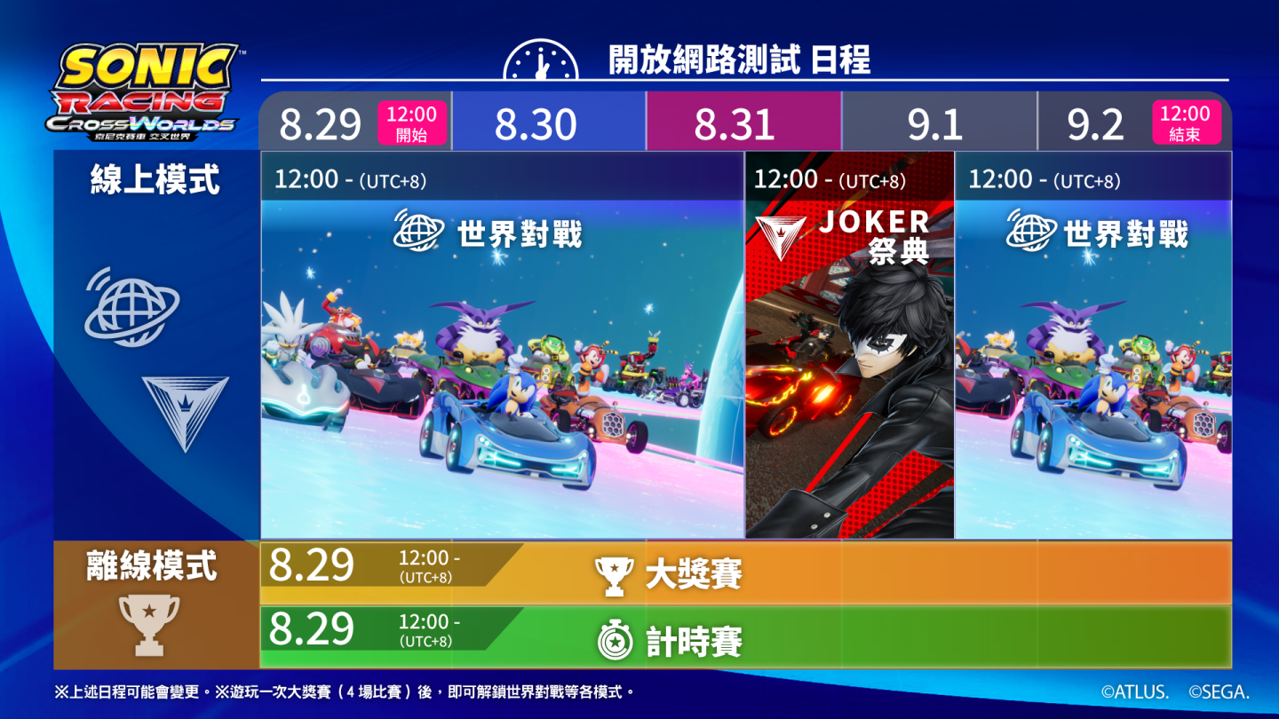 SEGA 世雅宣布,有預定 2025 年 9 月 25 日(四)起在 PS5/PS4/Xbox Series X|S/Xbox One/Nintendo Switch 2/Nintendo Switch/PC(Steam/Epic Games Store)等平台發售的《索尼克賽車 交叉世界》,決定舉辦期間限定的開放網路測試。
