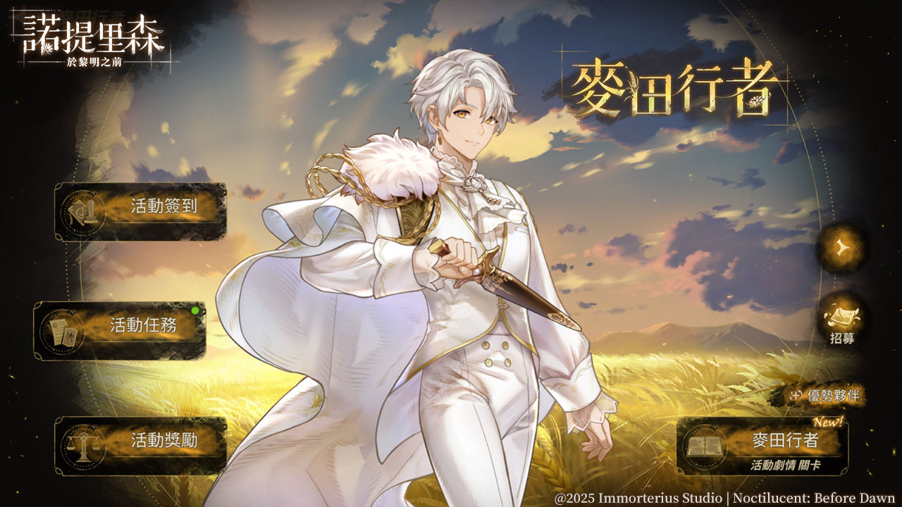 為紀念旅途中每一次心動與守候,週年主題活動「麥田行者」浪漫展開——全新主題角色 「安里:黎明曙光」首次現身,十位夥伴亦換上週年限定時裝,齊聚安里的故鄉「麥農村」,展開一段充滿回憶與驚喜的夏季旅程。金黃麥浪翻湧,往昔片段如風掠過,邀你一同回望那些與夥伴們相識、相知、相守的點滴溫柔。