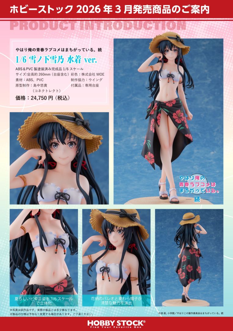 HOBBY STOCK Inc.(株式会社ホビーストック)宣布全新模型『果然我的青春戀愛喜劇搞錯了。續 1/6 雪之下雪乃 泳裝Ver.』於 2025 年 8 月 21 日起開始接受預購。