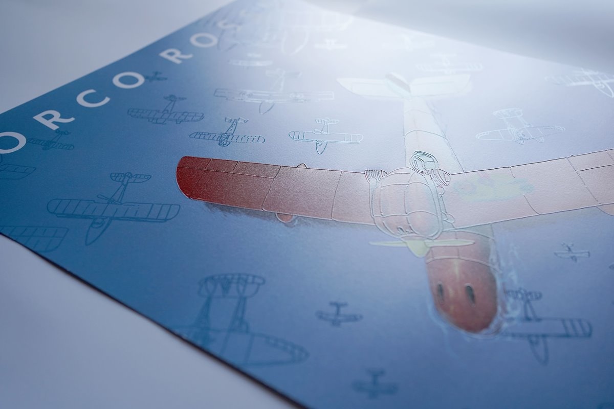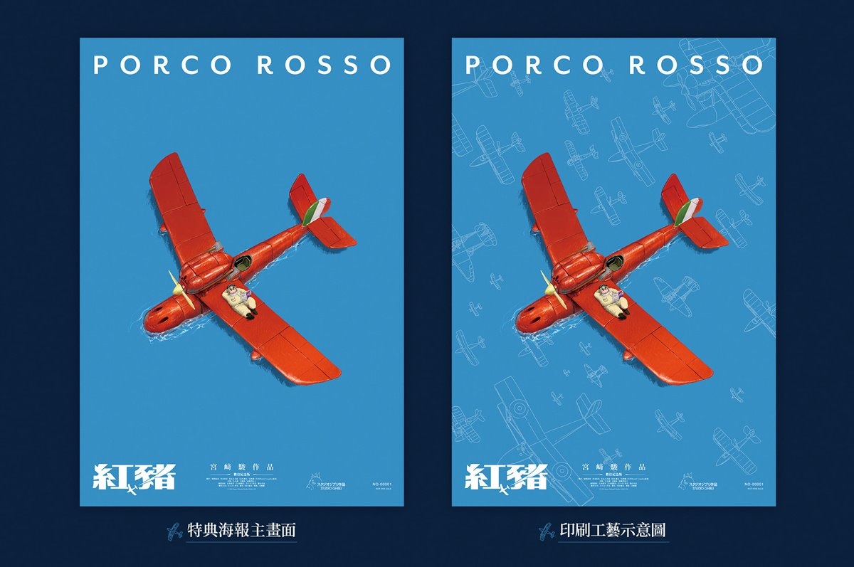 在吉卜力迷熱烈敲碗下,繼上半年《風之谷》掀起現象級「王蟲熱潮」之後,片商甲上娛樂今隆重公開金獎設計師方序中與知名藝術家董十行再度聯手為《紅豬》打造台灣限定海報,視覺以湛藍海面作為襯底,動畫中最經典的象徵——「紅豬」波魯克與他的紅色戰鬥機停泊其上,透過局部打凸的印刷工藝營造立體感十足的飛行艇輪廓,而看似波光粼粼的海面,隨著光線與視角的變化,驚喜發現竟是一架架局部上光不上色的飛機群,翱翔於上空相伴左右,細膩且多層次的視覺彩蛋層出不窮,完美復刻《紅豬》作品中所傳達「翱翔的浪漫」精神,全球限量僅 5 萬份的 A2 尺寸首週重磅特典,收藏價值絕對爆表。