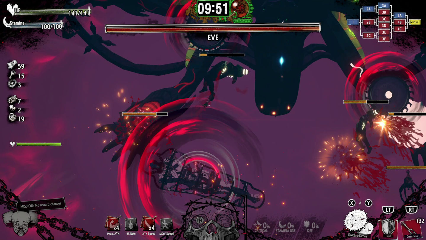 玩家將操縱潔絲汀與她的第二人格,在這個如夢魘般鮮血四濺的 2.5D 橫向卷軸遊戲中浴血奮戰,通過瘋狂的恐怖主題樓層,迎戰以恐怖電影為靈感的殺人魔!而當女主角每死亡一次,都能與過去的自己分身一起並肩作戰,並能透過不斷擊殺敵人來變得更加強大!