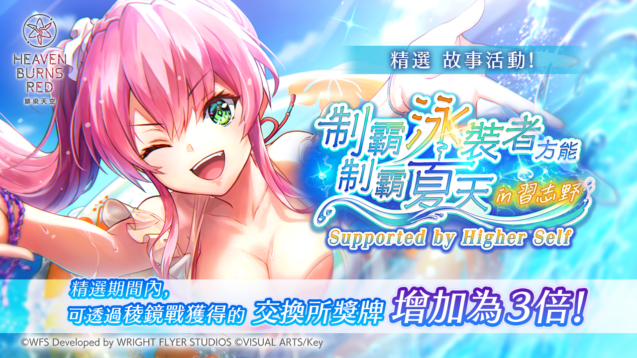 期間限定精選故事活動「制霸泳裝者方能制霸夏天 in 習志野 Supported by Higher Self」!在精選期間中,透過稜鏡戰獲得的交換所獎牌獲得數將上升至 3 倍。