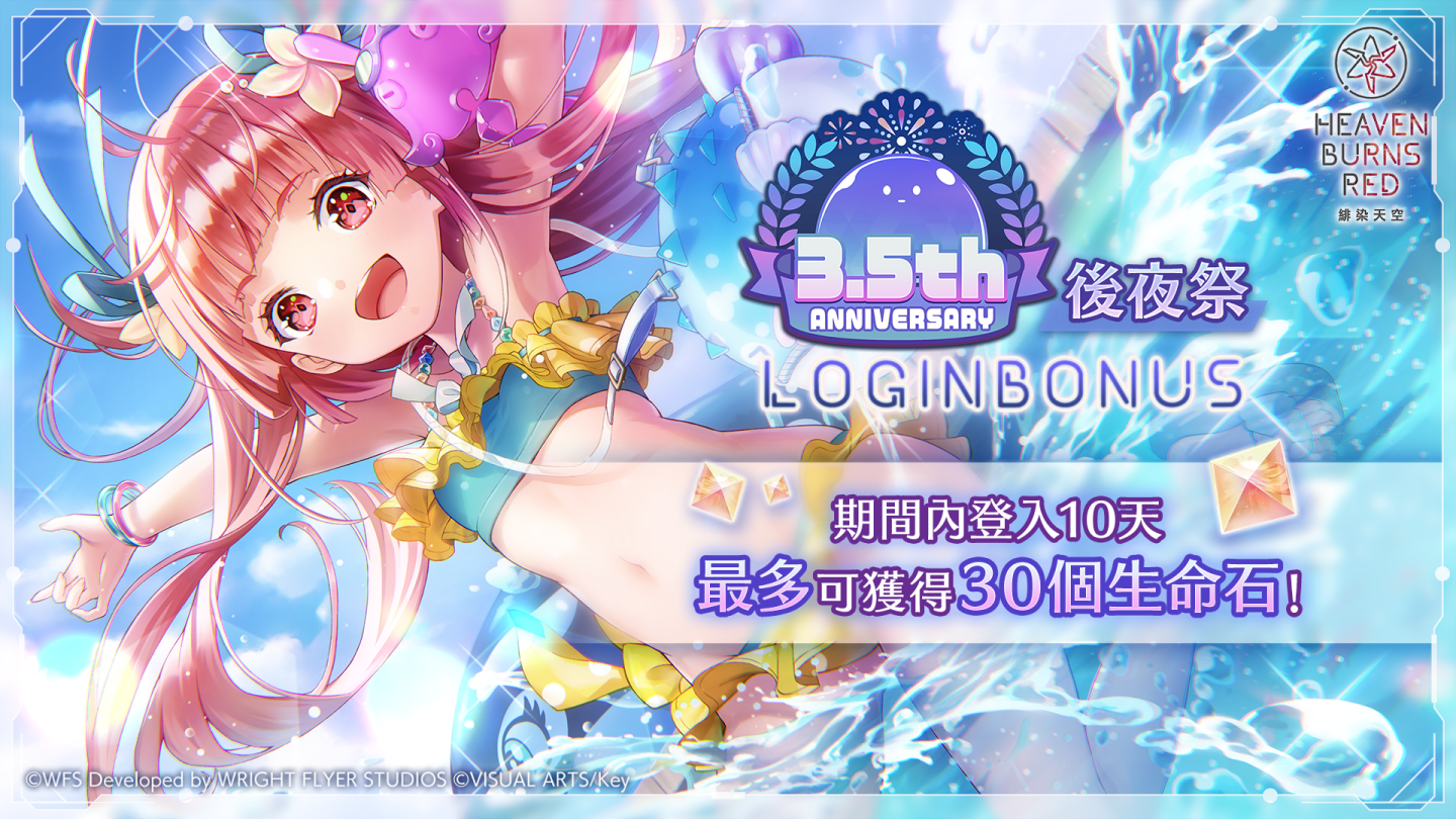 舉辦3.5th Anniversary 後夜祭 登入獎勵!