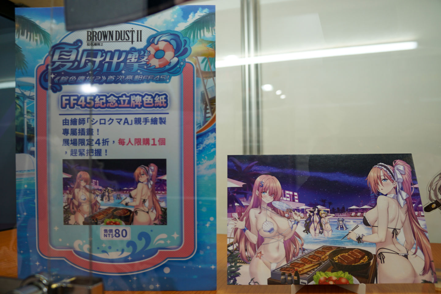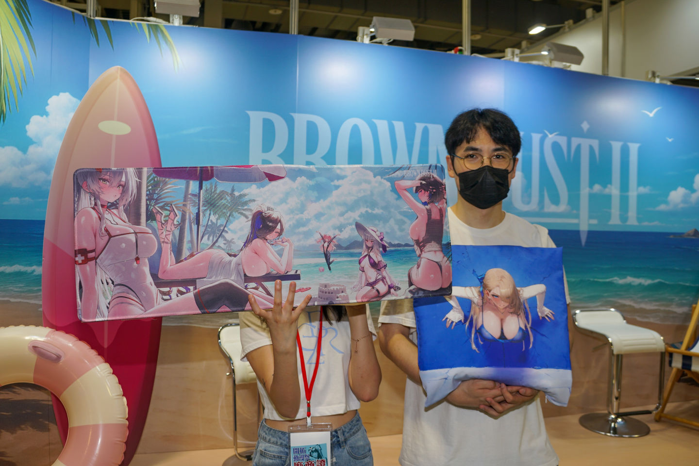 在為期三天的活動中,《棕色塵埃2》的泳裝主題攤位將展售豐富的紀念週邊,其中包括為了慶祝遊戲兩週年而推出的限定紀念商品,以及今年1月在「台北國際電玩展」上一度銷售一空、玩家詢問度極高的人氣商品 。