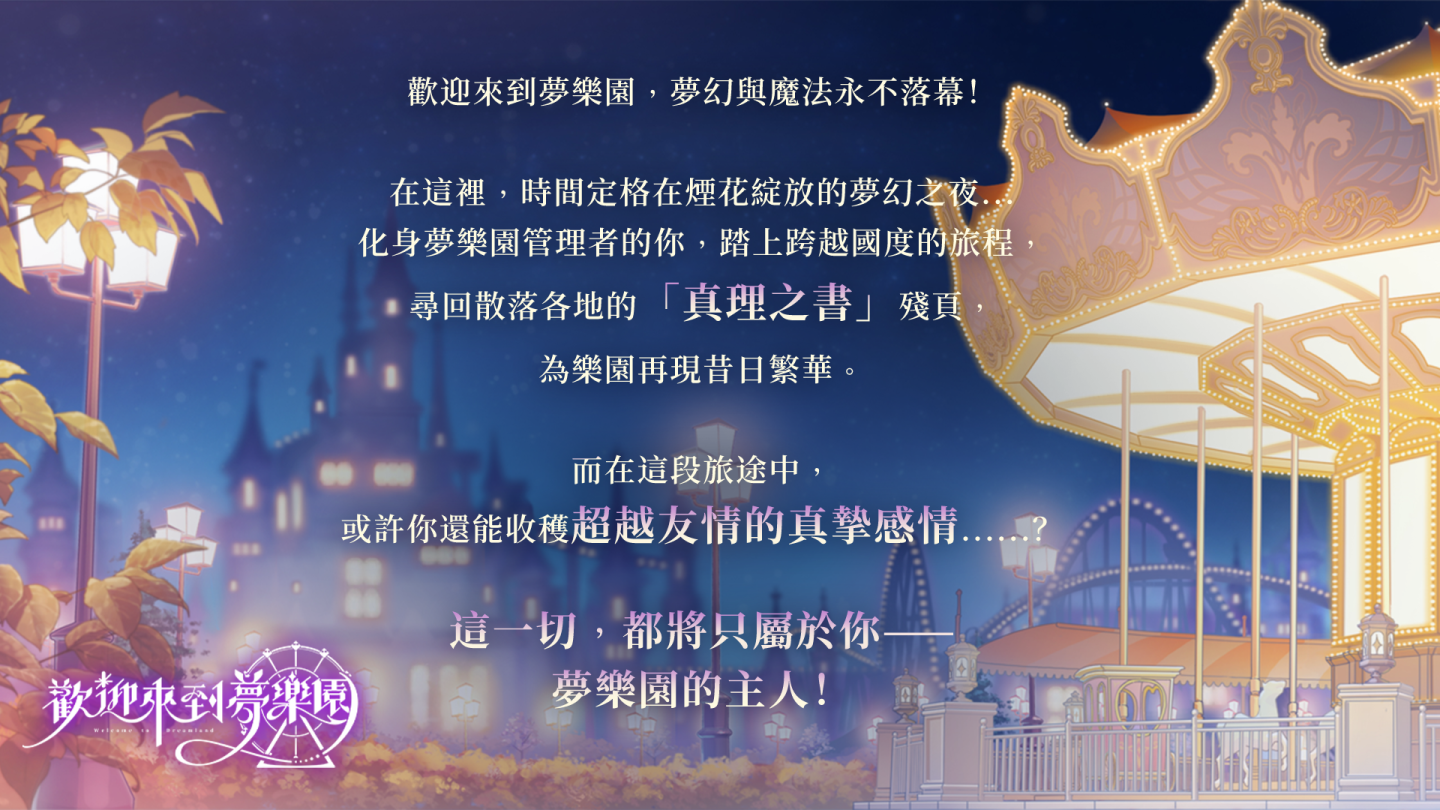 Poseidon Games 今日宣布,取得由月環網絡開發的女性向輕喜劇異界冒險手遊《歡迎來到夢樂園》(iOS/Android)台港澳代理權,預計將於今年秋季展開事前預約活動。