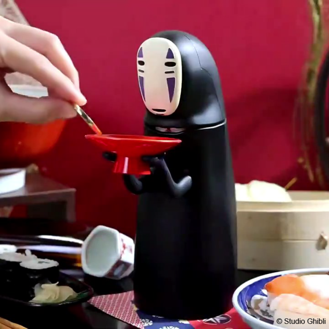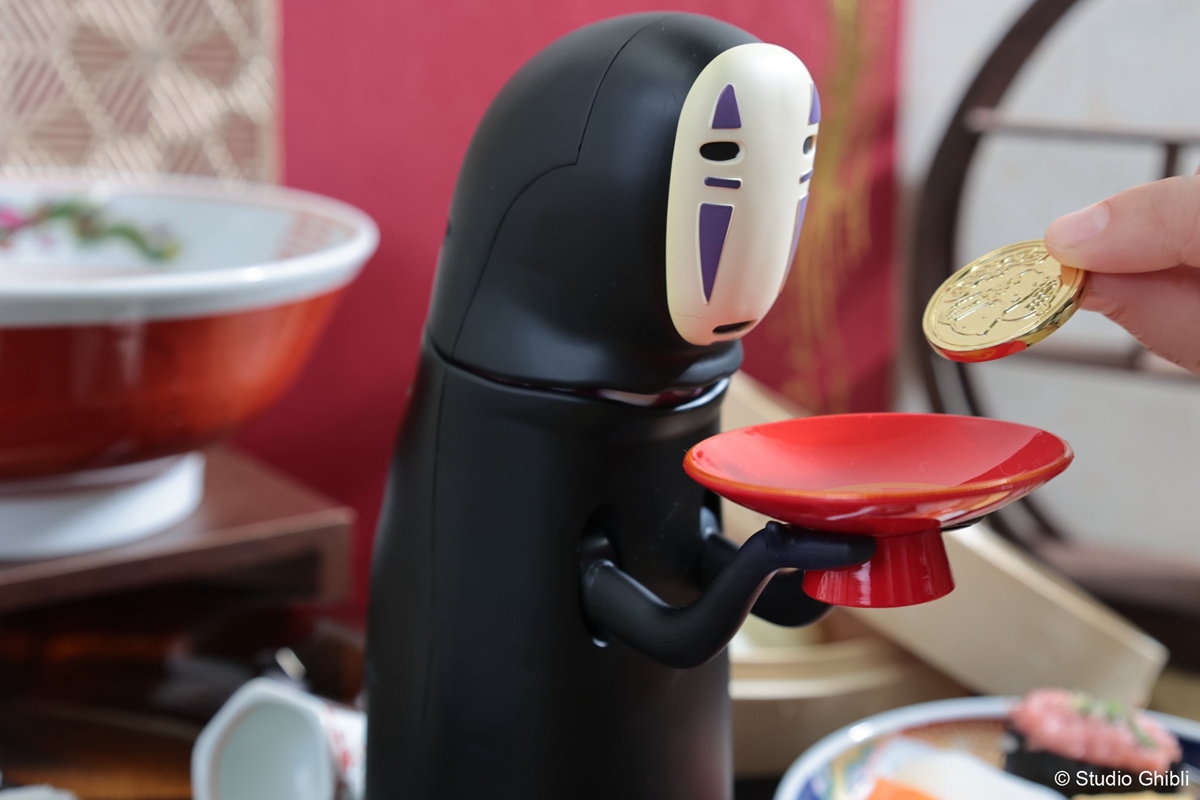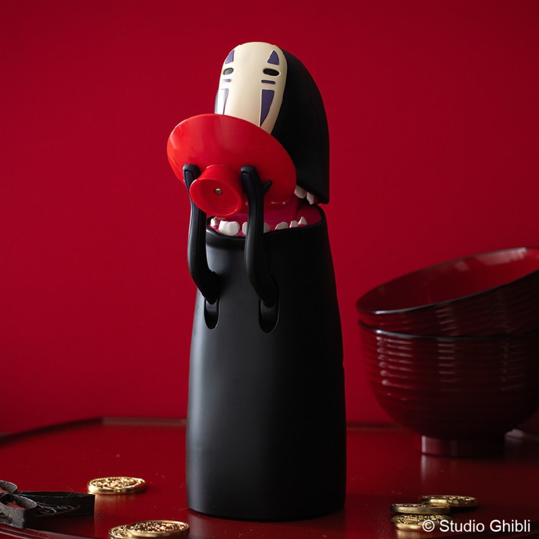 《神隱少女》以神秘而獨特的世界觀吸粉無數,代表性之一的角色「無臉男」,暗喻人性的他與獨特外觀形,讓大家留下深刻的印象。呼應作品經典片段,經典商品《神隱少女無臉男大口吃存錢筒》生動呈現無臉男吞食佳餚的趣味場景,讓存錢過程更添互動樂趣。
