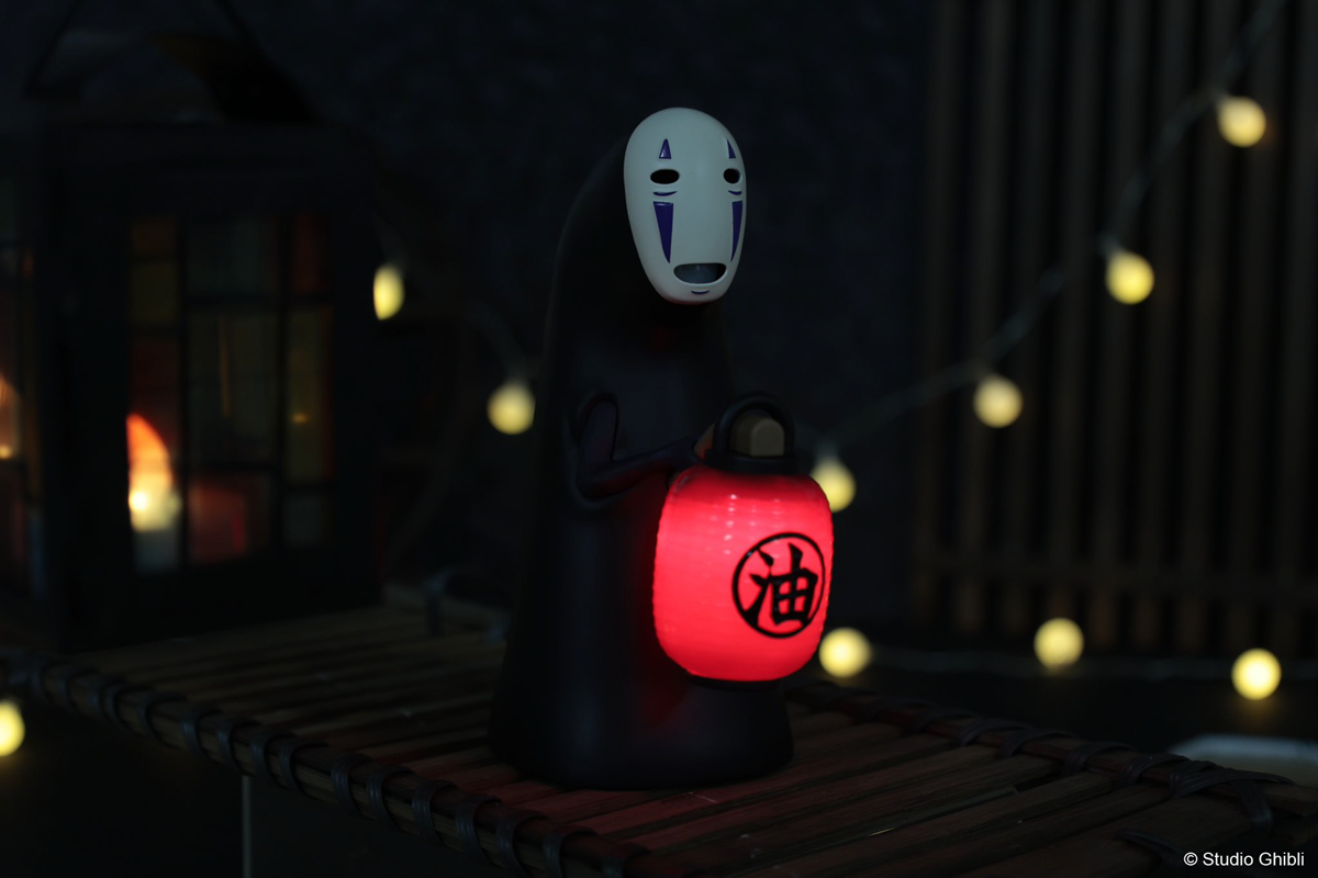 《感應燈神隱少女無臉男提燈》則以無臉男以盼望的表情提著油屋紅燈籠為造型設計,感應到體溫即會亮燈,以閃爍燈光呈現燭火搖曳,帶領粉絲走入作品奇幻的世界觀。