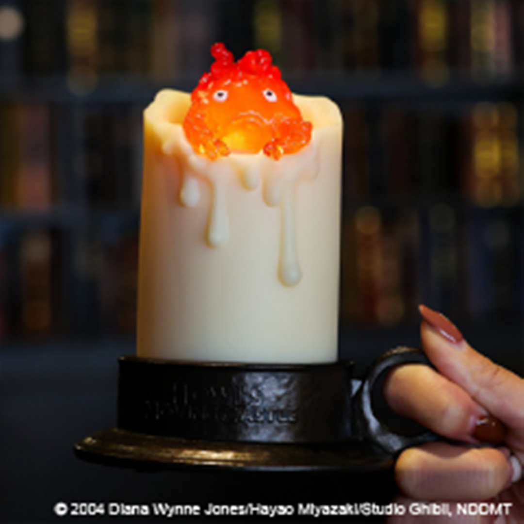 以人氣角色卡西法為主角的《LED燭燈霍爾的移動城堡搖曳的卡西法》,內建兩種顏色的火光效果,只要左右搖晃燭燈就可以控制開關,呈現卡西法靈巧生動的一面之外,也重現蘇菲試圖移動卡西法時,卡西法所流露出搖曳不安的俏皮姿態。