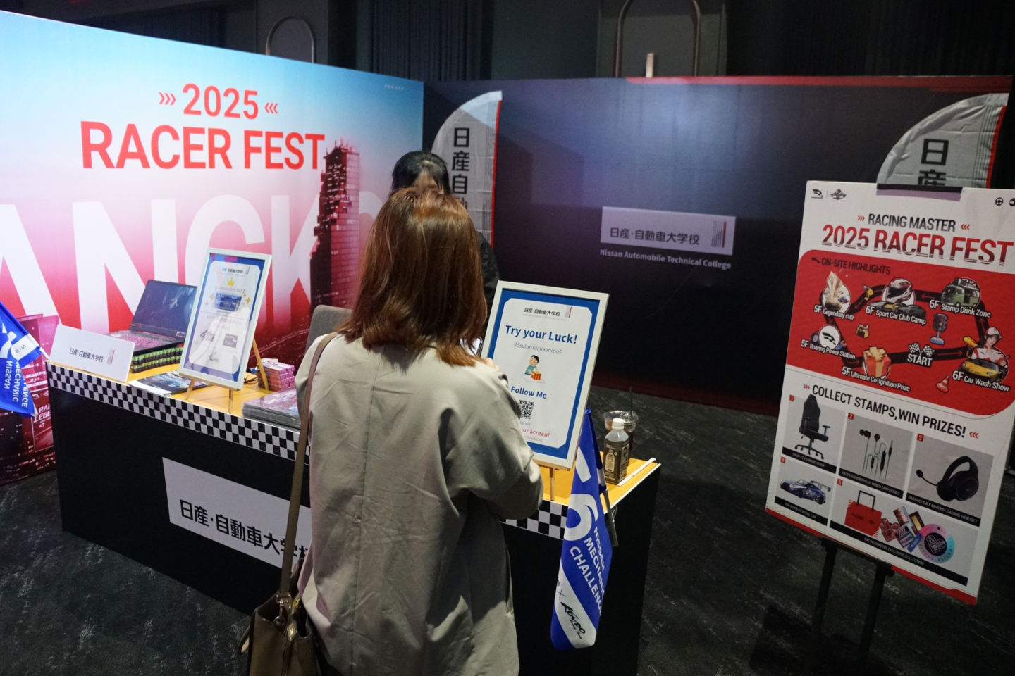位於五樓的傳奇盃決賽舞台外,就是為現場玩家準備的遊戲互動體驗區,包含「日產自動車大學校」也在現場設攤展示。次跨區榮耀賽的獎項提供規劃了五日的體驗行程兩名,得獎選手將可從汽車的製造觀摩甚至到真實賽車場巡禮。作為培育專業技師的日產直屬汽車整備專門學校,擁有讓學生直接參與日本頂級賽事Super GT的「日產技師挑戰」活動,此次能參與「Racer Fest」,是向所有參與者傳達汽車文化與賽車運動魅力的寶貴機會。